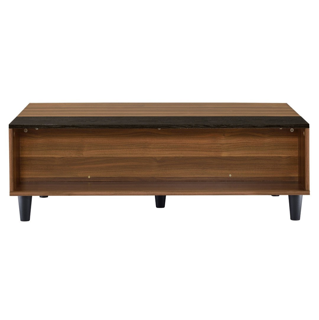 A stylish blend of mid-century warmth and modern functionality, this walnut-and-black lift-top coffee table transforms your living room into a more comfortable, organized, and elegant space. The smooth lift-top mechanism creates an elevated surface for working, dining, or entertaining, while the open storage compartment keeps frequently used items within easy reach. Clean lines, tapered wooden legs, and a two-tone finish make this piece a versatile focal point that complements a wide range of décor styles.