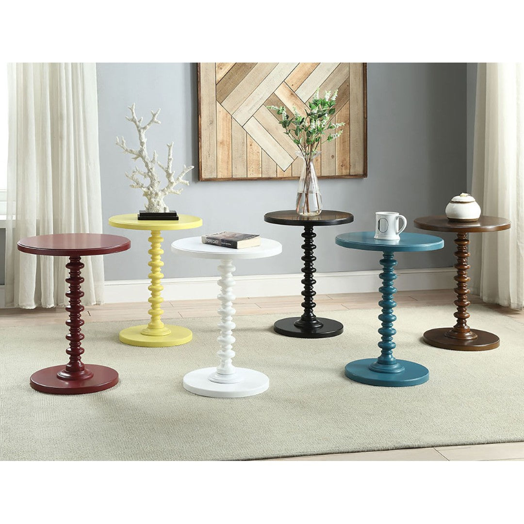 - Design: Round top and base with no apron for a sleek, uncluttered look; turned pedestal adds subtle visual interest and classic charm.