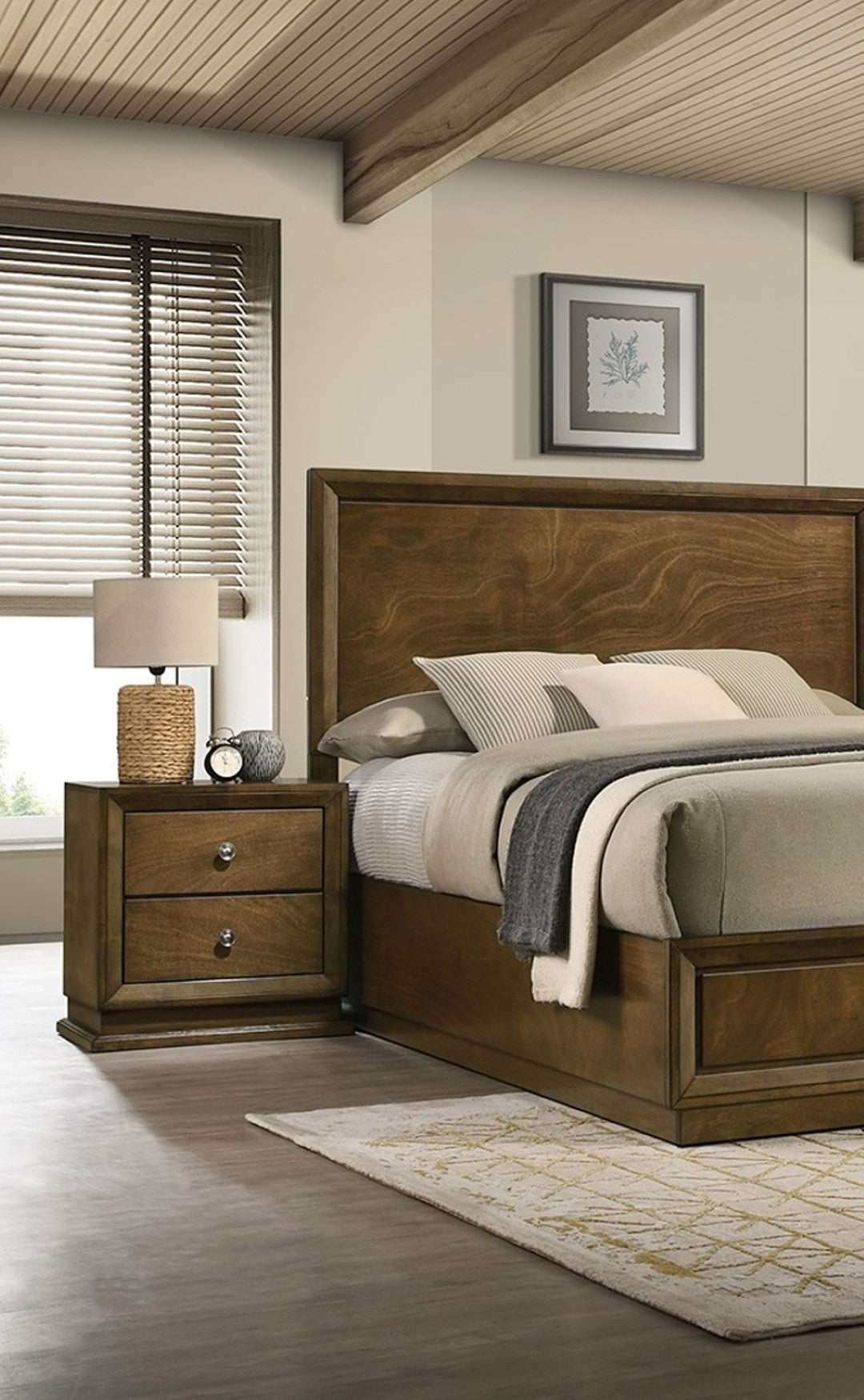 Bring warmth and timeless style to your bedroom with this Walnut-finish 3-piece set featuring a twin bed and two matching nightstands. Crafted from solid rubberwood with Okume veneer and engineered wood accents, the collection blends transitional design with durable construction—ideal for creating a cozy, polished sleep space. Clean lines, a high carved headboard, and bronze-finish metal knobs deliver a refined look that pairs well with both classic and contemporary décor.