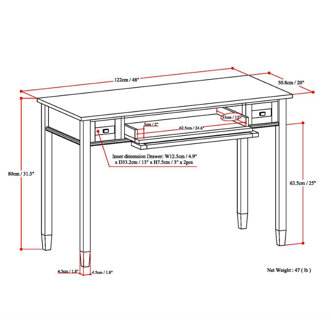 - Features two side storage drawers with metal drawer glides and a flip down central drawer front with internal keyboard tray