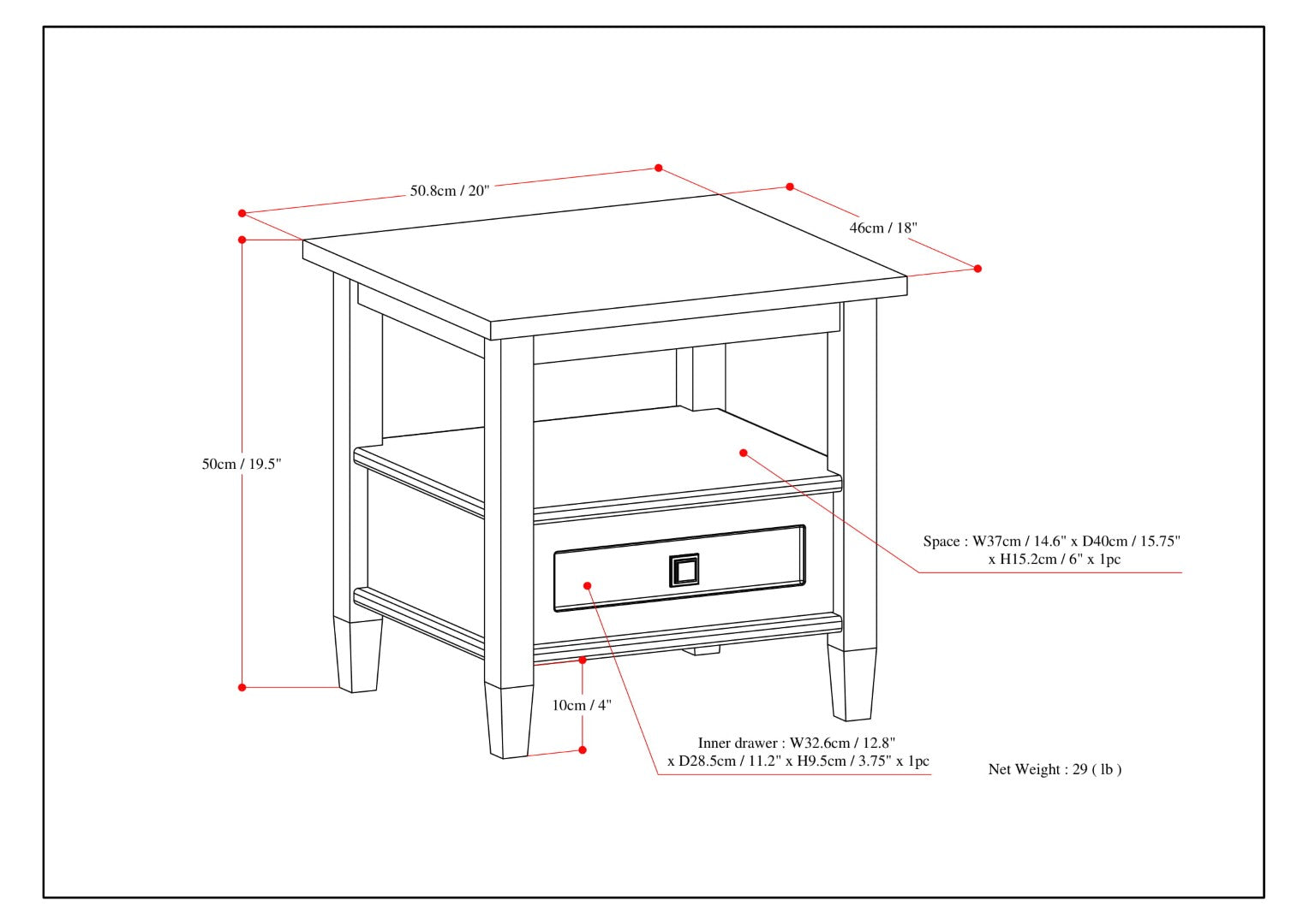 Invite timeless style and practical function into your living space with this warm Shaker-inspired solid wood end table in a rich black finish. Thoughtfully scaled and crafted, it blends traditional details with clean, transitional lines to serve as an elegant and useful companion beside sofas, chairs, or beds.