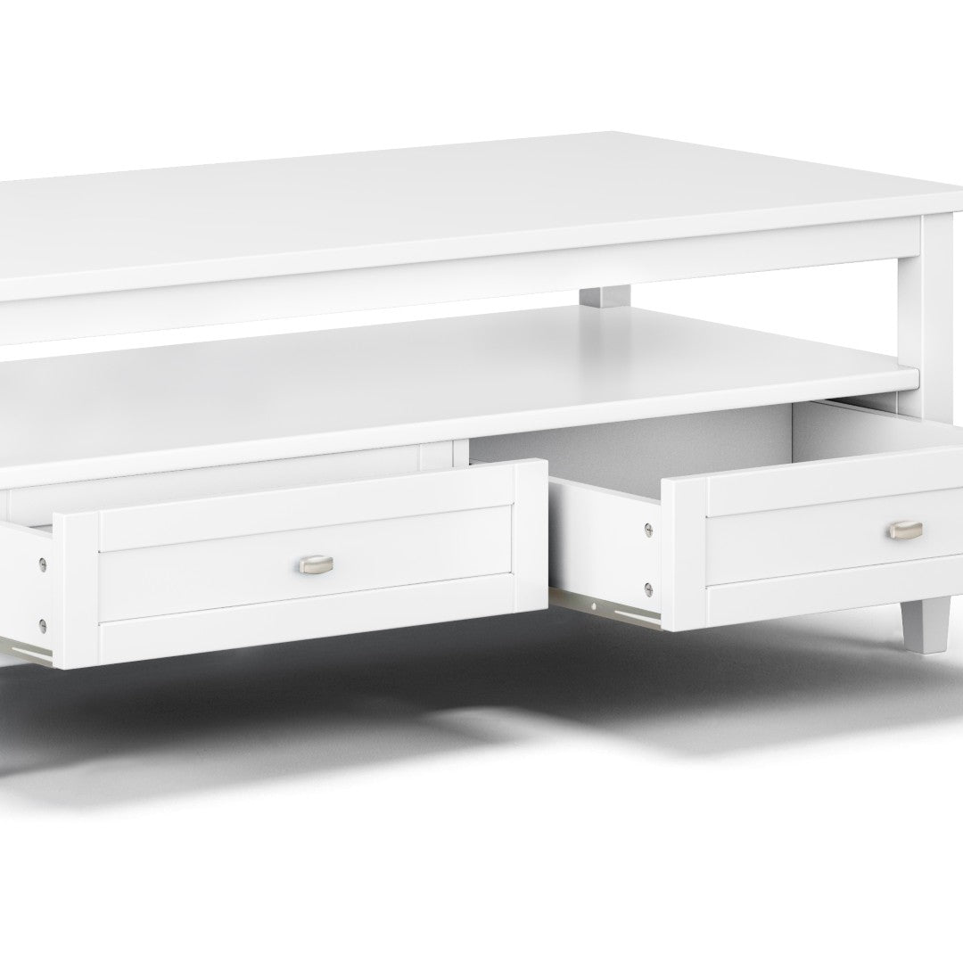 Elevate your living space with this Warm Shaker solid wood coffee table, combining timeless transitional styling with practical storage and durable construction. Its clean white finish and shaker-inspired details make it a versatile centerpiece that complements both casual and formal interiors while offering ample surface area and hidden storage for everyday living.