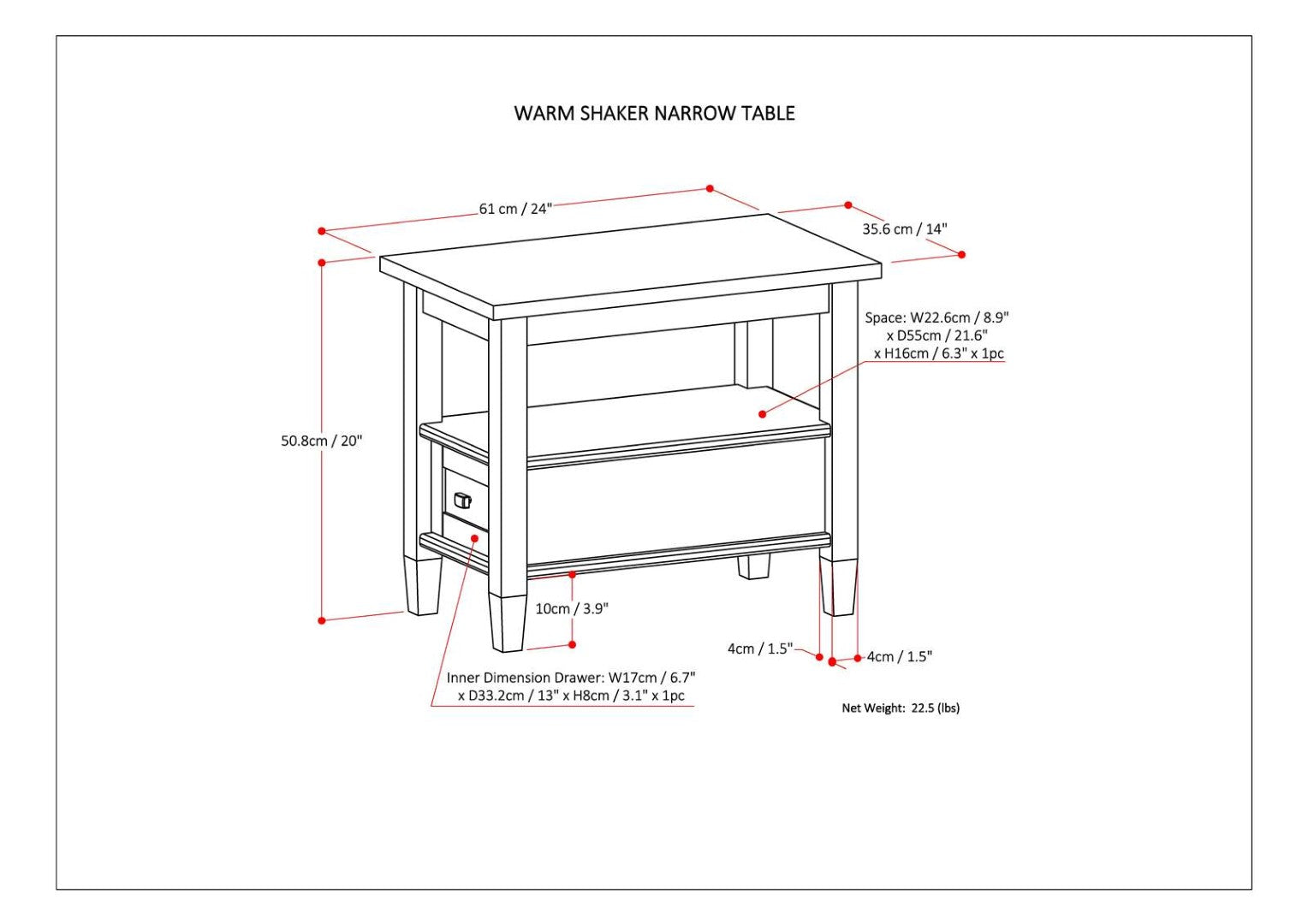 Bring clean lines and warm wood tones to compact spaces with this solid wood narrow side table. Thoughtfully designed for transitional interiors, it pairs durable craftsmanship with practical storage to create a stylish, space-saving accent that works equally well beside sofas, in bedrooms, or in tight hallways.