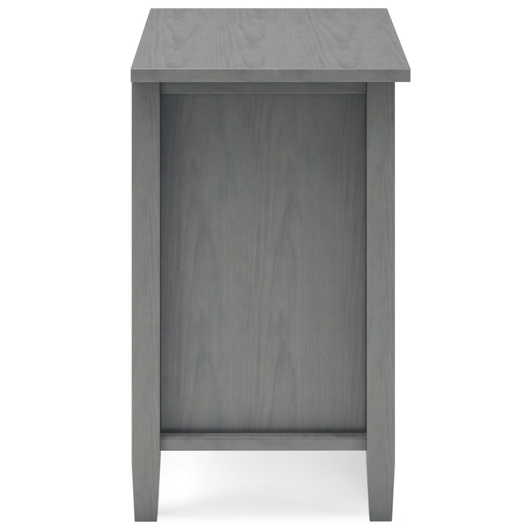 A refined blend of classic Shaker lines and contemporary fog grey finish, this solid wood nightstand brings durable construction and versatile storage to bedroom or living spaces. Its compact footprint and thoughtful details—tapered legs, nickel hardware, and protective lacquer—make it a stylish, functional addition beside a bed or sofa.