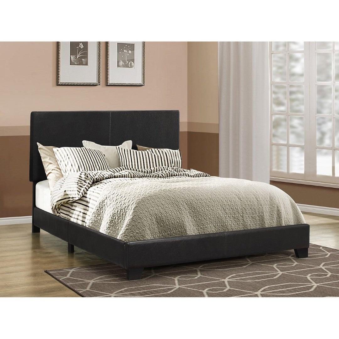 This elegant black upholstered California King bed brings refined comfort and modern style to your bedroom. With a tall, padded headboard and smooth, durable upholstery, it creates a sophisticated focal point while offering supportive construction for everyday use. Designed for easy pairing with a variety of décor, the Warwick combines classic lines, sturdy materials, and thoughtful details to elevate your sleep space.