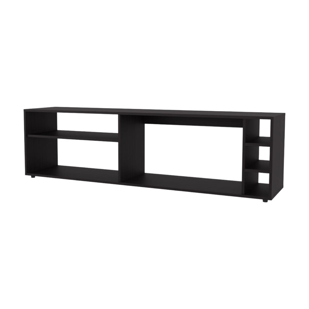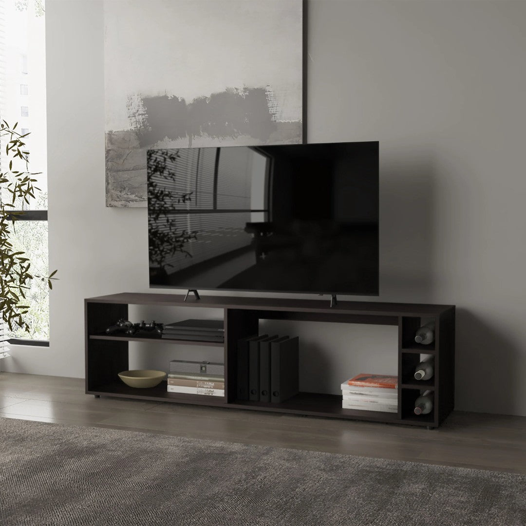 Elevate your entertainment area with this elegant Wengue TV stand — a refined, low-profile centerpiece that combines a deep wood-tone melamine finish with practical open shelving for easy access and organized storage. Built to support a large flat-screen and simplify your media setup, it balances modern style with everyday functionality.