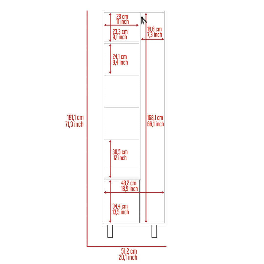 - Pantry cabinet: 71.3" H x 20.1" W x 15.1" D