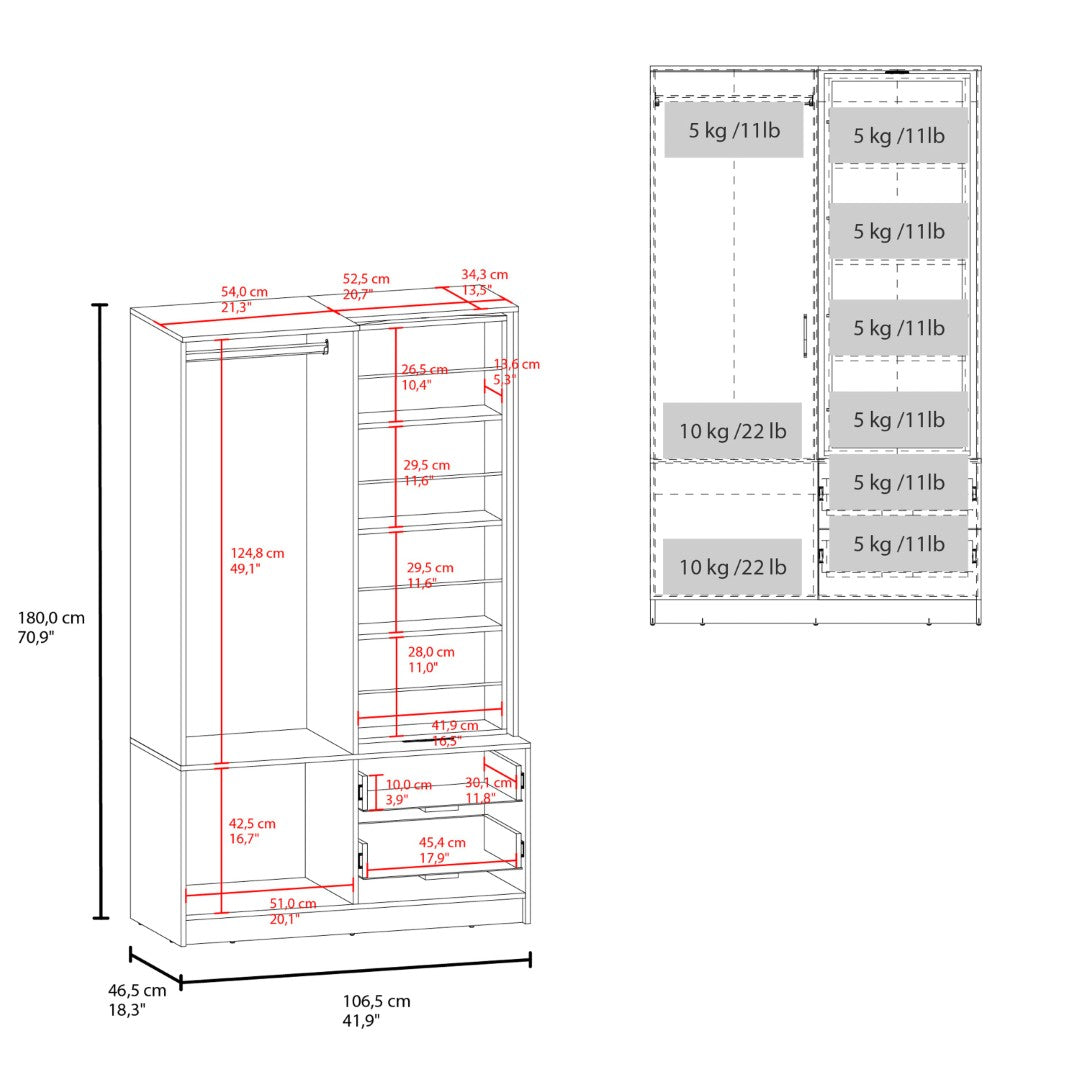 - Integrated Mirror: Built into the door for convenient dressing and to visually expand the room.