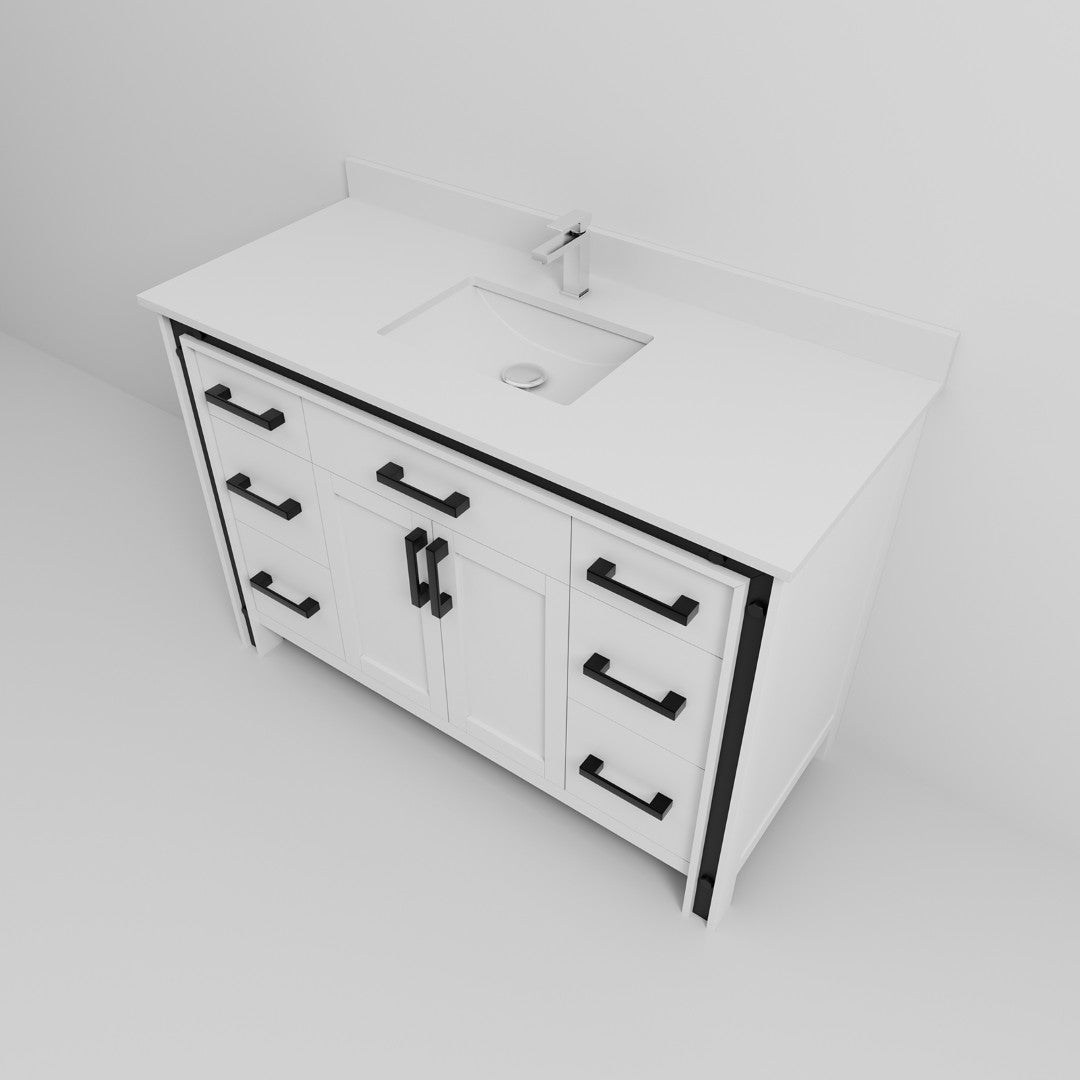 Upgrade your bathroom with a stylish and functional vanity that combines classic white cabinetry with a durable quartz countertop and a complete faucet set. Thoughtfully designed for everyday use, this vanity offers generous storage, soft-close convenience, and a surface engineered to resist scratches and stains—bringing both beauty and durability to your space.