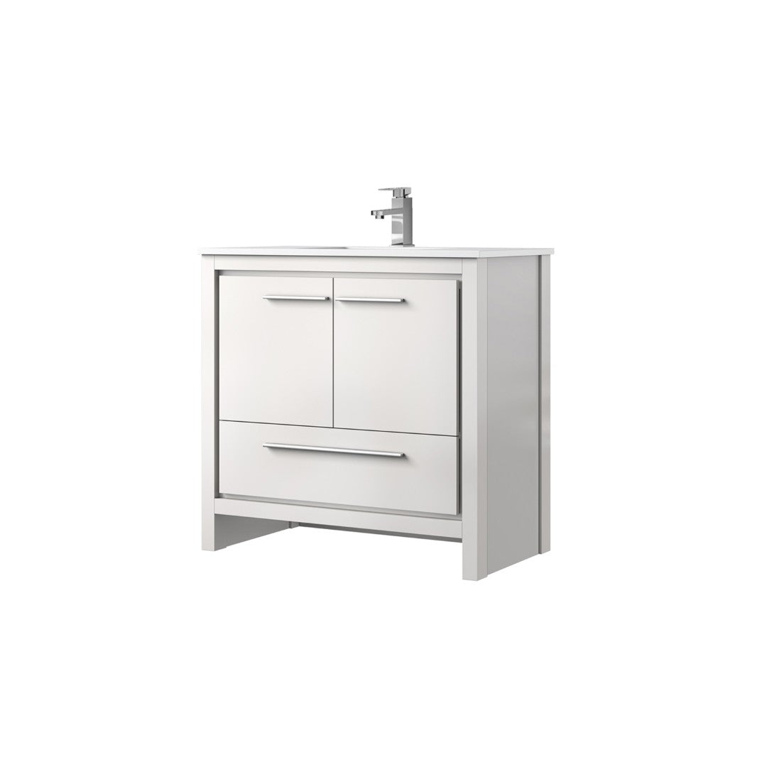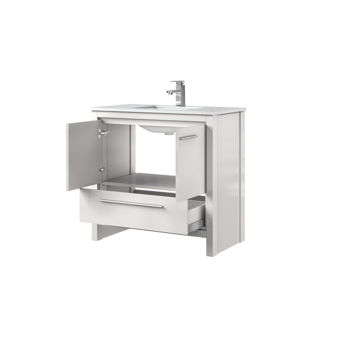 This elegant white bath vanity combines classic styling with modern functionality — a perfect centerpiece for updating your bathroom. It pairs a durable cultured marble top and a chrome faucet with smart storage and soft-close hardware to deliver lasting performance and a refined look.