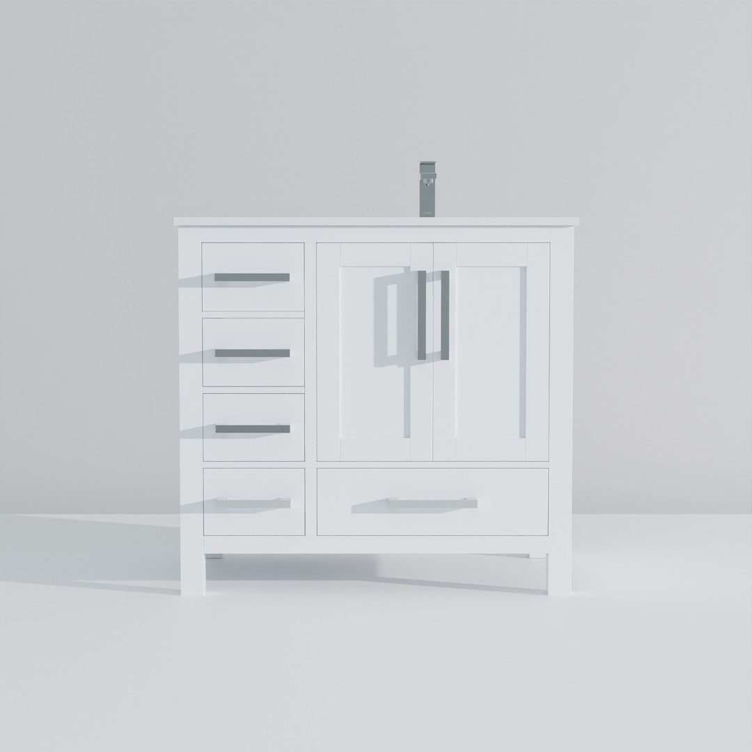 Upgrade your bathroom with a stylish and functional vanity that combines classic white cabinetry, durable surfaces, and a complete faucet set for a ready-to-install solution. Designed for everyday use, this vanity offers ample organized storage, soft-closing hardware for quiet operation, and a cultured marble top that resists scratches and stains to maintain its fresh appearance.