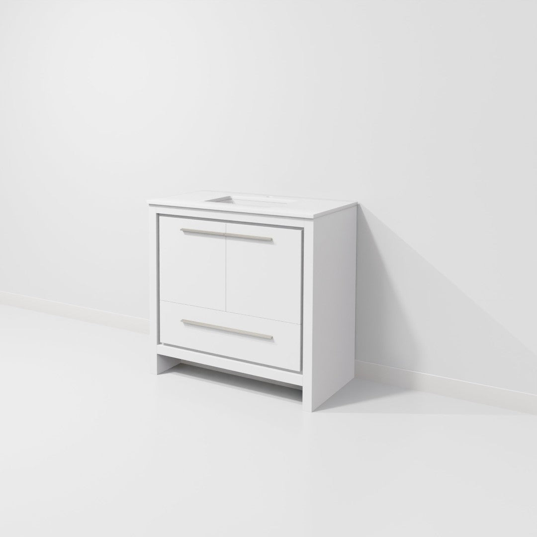 Upgrade your bathroom with a clean, modern vanity that combines durable materials and practical storage in a compact footprint—ideal for contemporary and transitional spaces. The white finish and quartz top deliver a bright, low-maintenance surface while the thoughtfully designed storage and soft-close hardware ensure daily convenience.