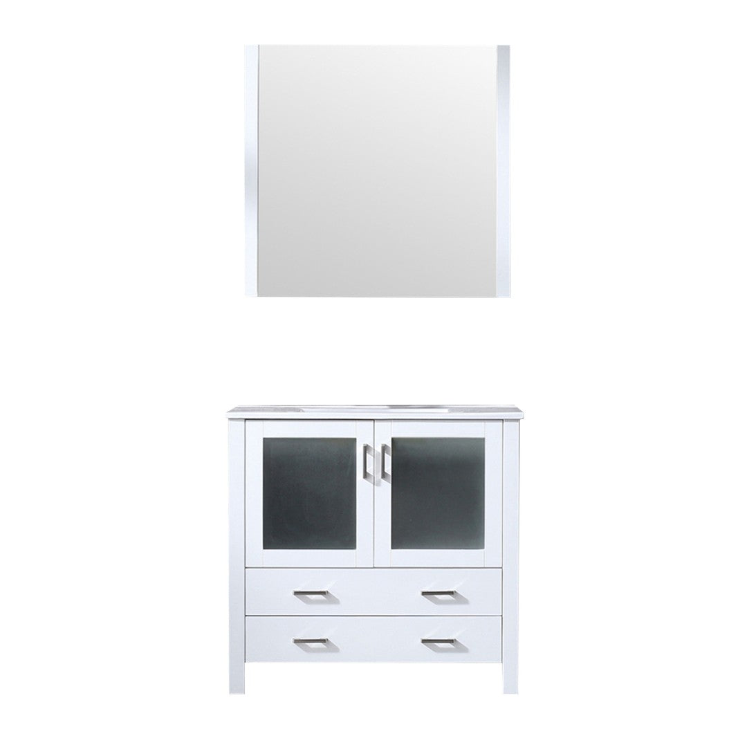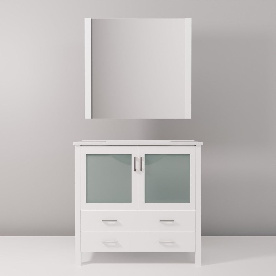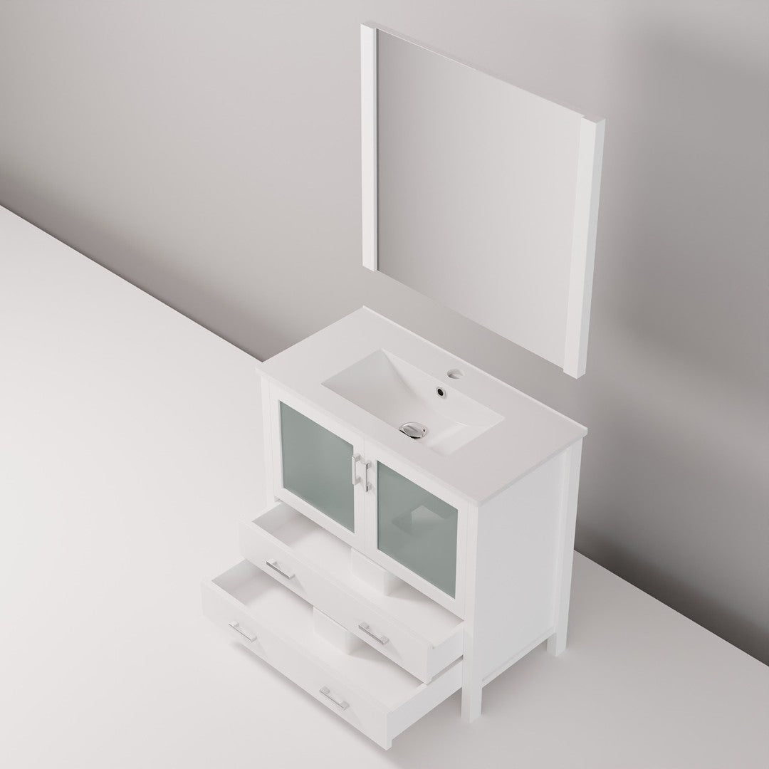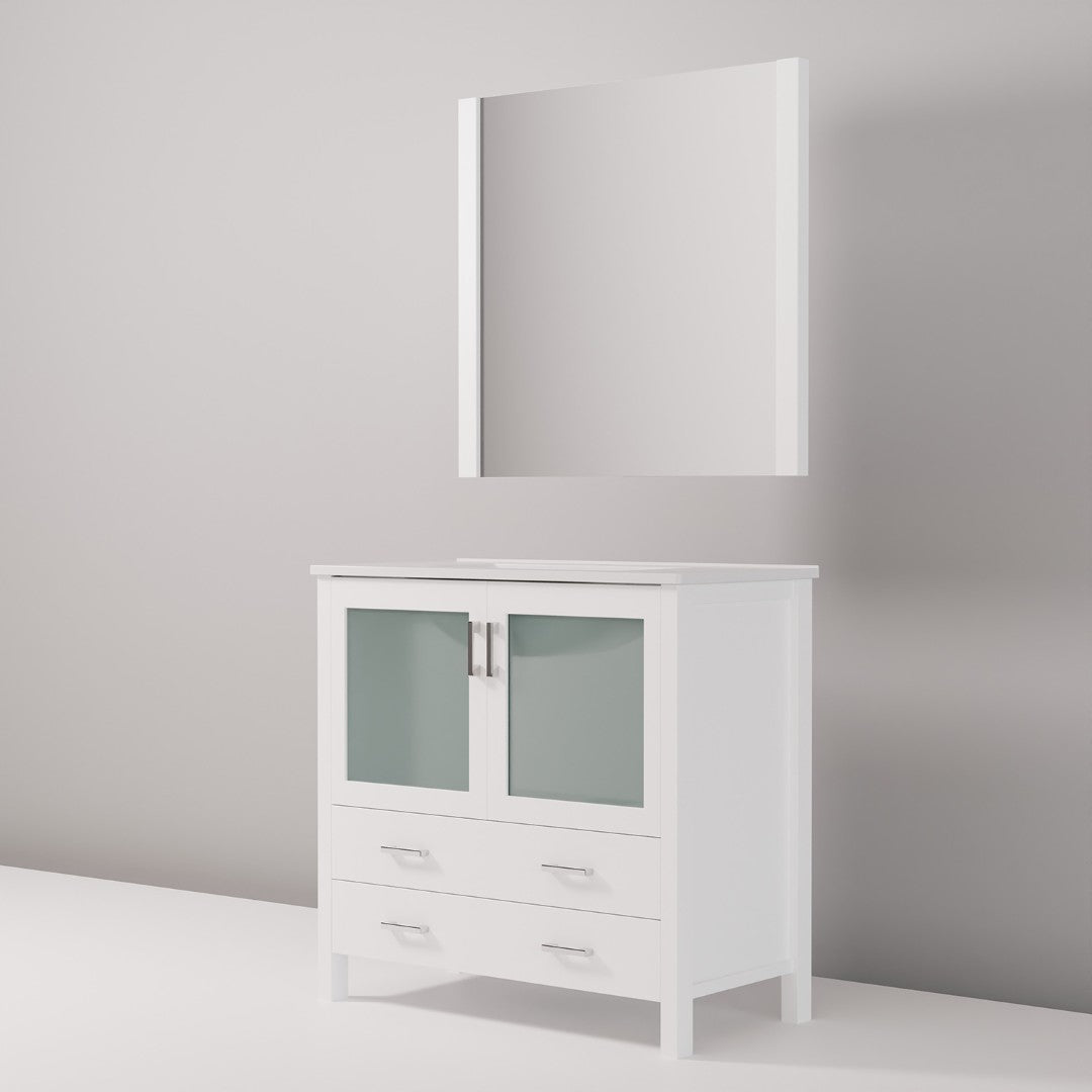 This elegant white bathroom vanity combines classic styling with modern functionality to elevate your space. Designed for durability and convenience, it offers ample storage, a resilient ceramic countertop, and a coordinating mirror to complete the look—ideal for homeowners seeking a clean, polished centerpiece for their bathroom.
