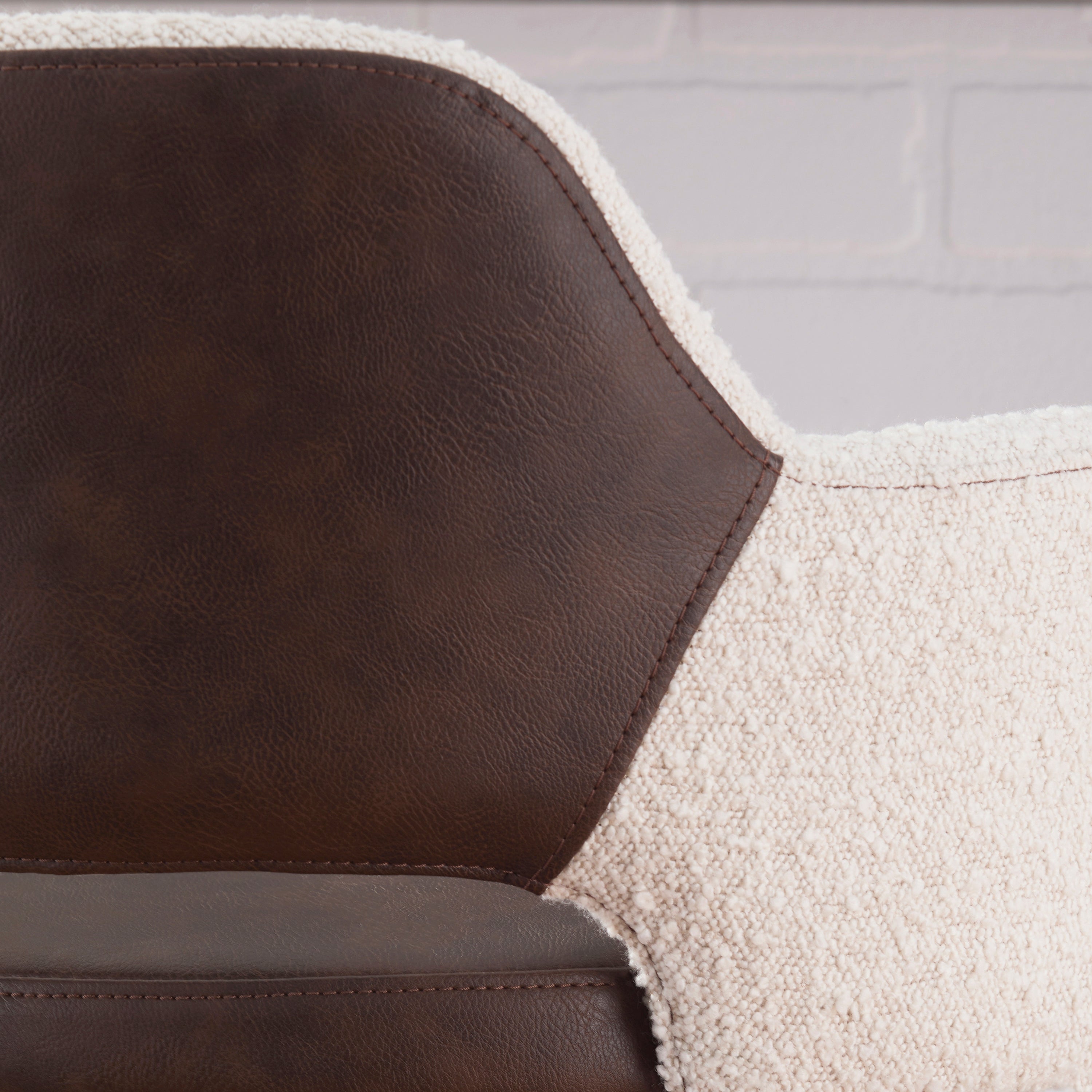 - Feature 1: Mix of vintage leatherette and fabric over foam back, fabric armrest