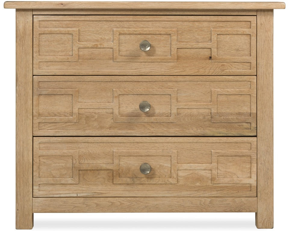 Invite relaxed, rustic sophistication into your bedroom or living area with this Driftwood bachelor's chest. Compact and thoughtfully detailed, it pairs a geometric drawer-front motif with functional features like self-closing hardware and a cedar-lined bottom drawer — ideal as a nightstand, entryway storage, or accent piece that blends casual charm with refined craftsmanship.