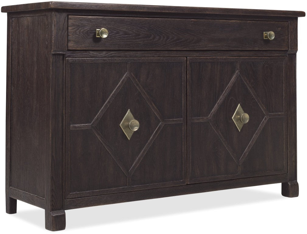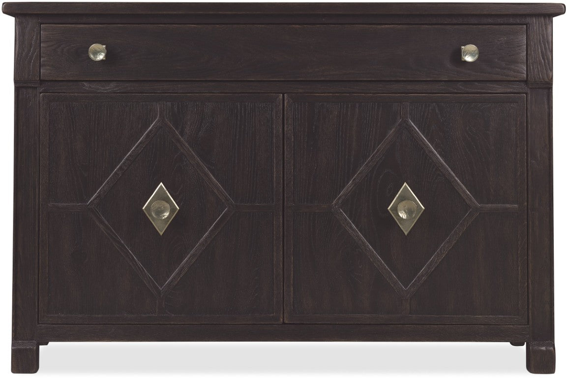 - Storage configuration: One self-closing top drawer plus two wood doors concealing a fixed interior shelf for organized, out-of-sight storage