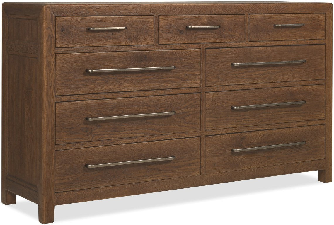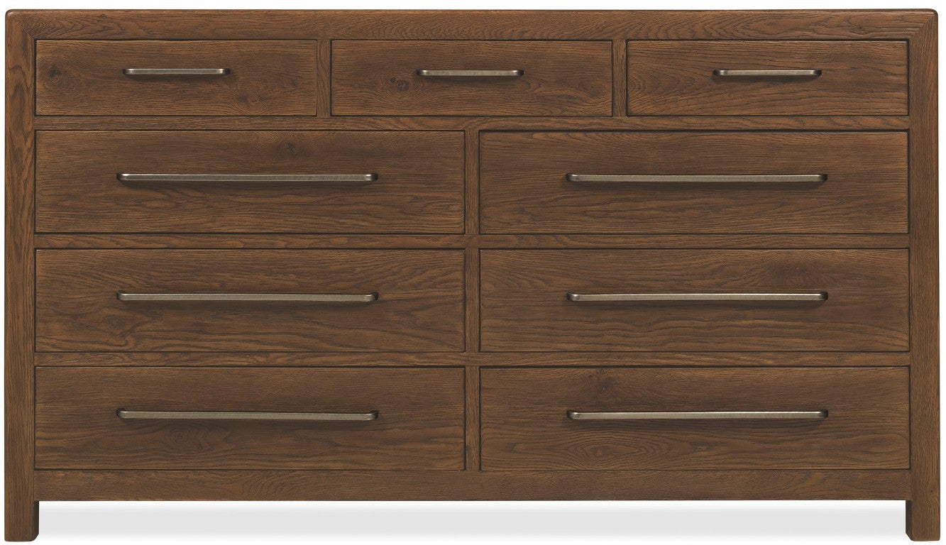 Bring organized, rustic elegance to your bedroom with this Driftwood nine-drawer dresser. Crafted from oak solids and veneers with cedar accents, it pairs durable construction and thoughtful details—like a removable jewelry tray and cedar-lined bottom drawers—with a sun-faded Buckboard finish and custom hardware for a lived-in, timeless look.