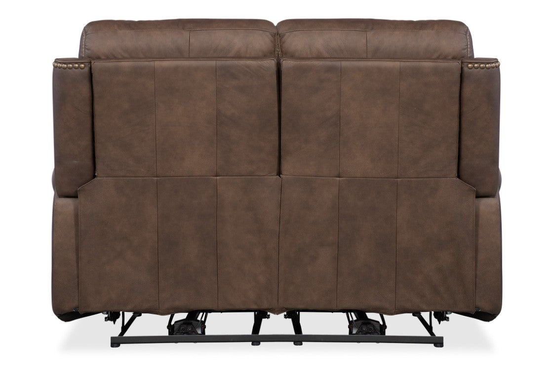 Experience luxury and ergonomic support with the Duncan Power Loveseat — a beautifully crafted reclining loveseat that blends traditional styling with modern conveniences. Plush seat cushions, a bustle-style back, rolled arms, and nailhead trim create an elegant silhouette, while power headrests, adjustable lumbar support, and a true zero-gravity recline deliver personalized comfort. Built for everyday living, it includes a USB charging port and a discreet pop-out arm panel with a hidden metal cupholder for convenience without compromising style. Upholstered in semi-aniline top-grain Kalahari Bark leather, the Duncan loveseat is ideal for formal living rooms, home theaters, or any space that requires both sophistication and superior comfort.