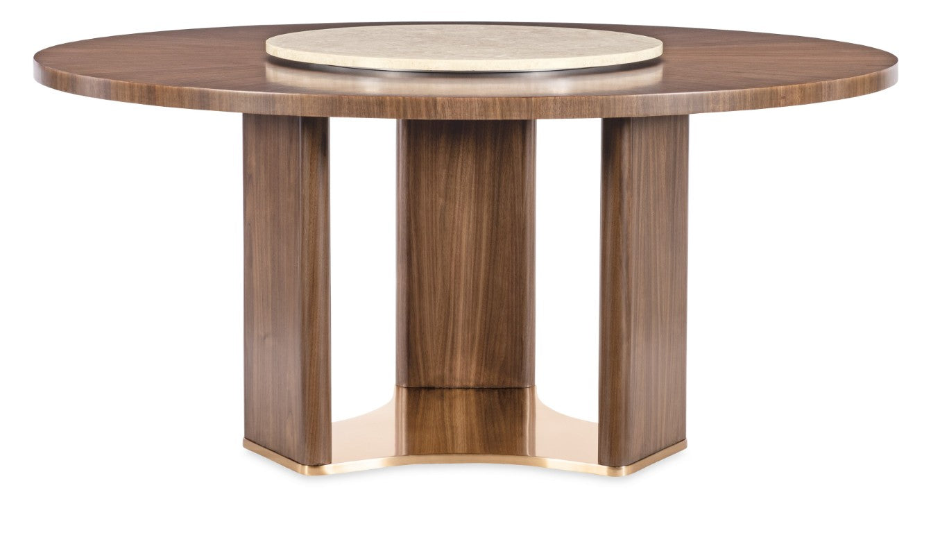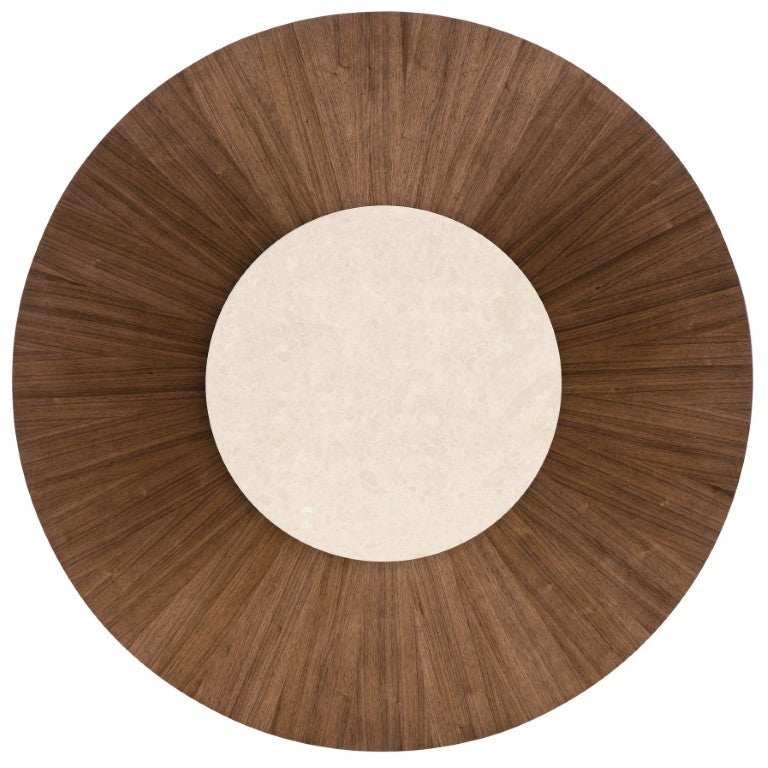Elevate your dining experience with the Eleana Round Dining Table — a sculptural centerpiece that blends refined craftsmanship with modern versatility. The starburst veneer tabletop and plated Sunlit Bronze pedestal create a warm, inviting focal point perfect for intimate dinners or stylish entertaining. Built with attention to detail and premium materials, this table brings transitional elegance to any dining space.