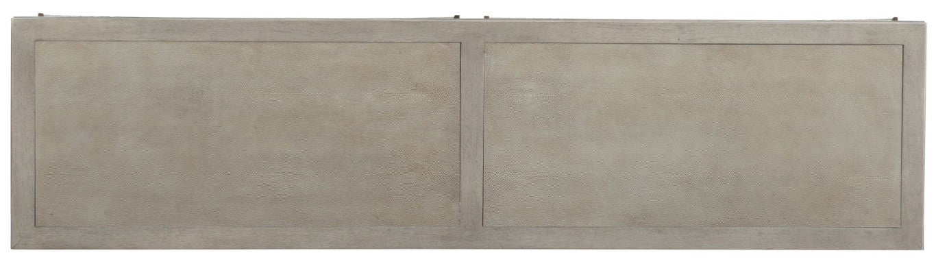 - Hardware & finish: Champagne silver metal accents complement the serene gray-beige finish applied to lightly sand-blasted walnut veneer for an organic, textured look.