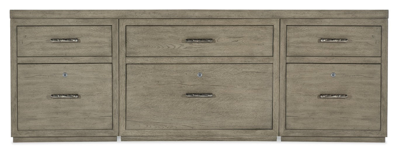 Elevate your workspace with the Linville Falls credenza—an 84-inch storage centerpiece that blends rustic, smoked-gray character with streamlined modern design. Built to organize active offices or home workspaces, it offers versatile storage for supplies and files while presenting a fully finished exterior that allows placement anywhere in the room.