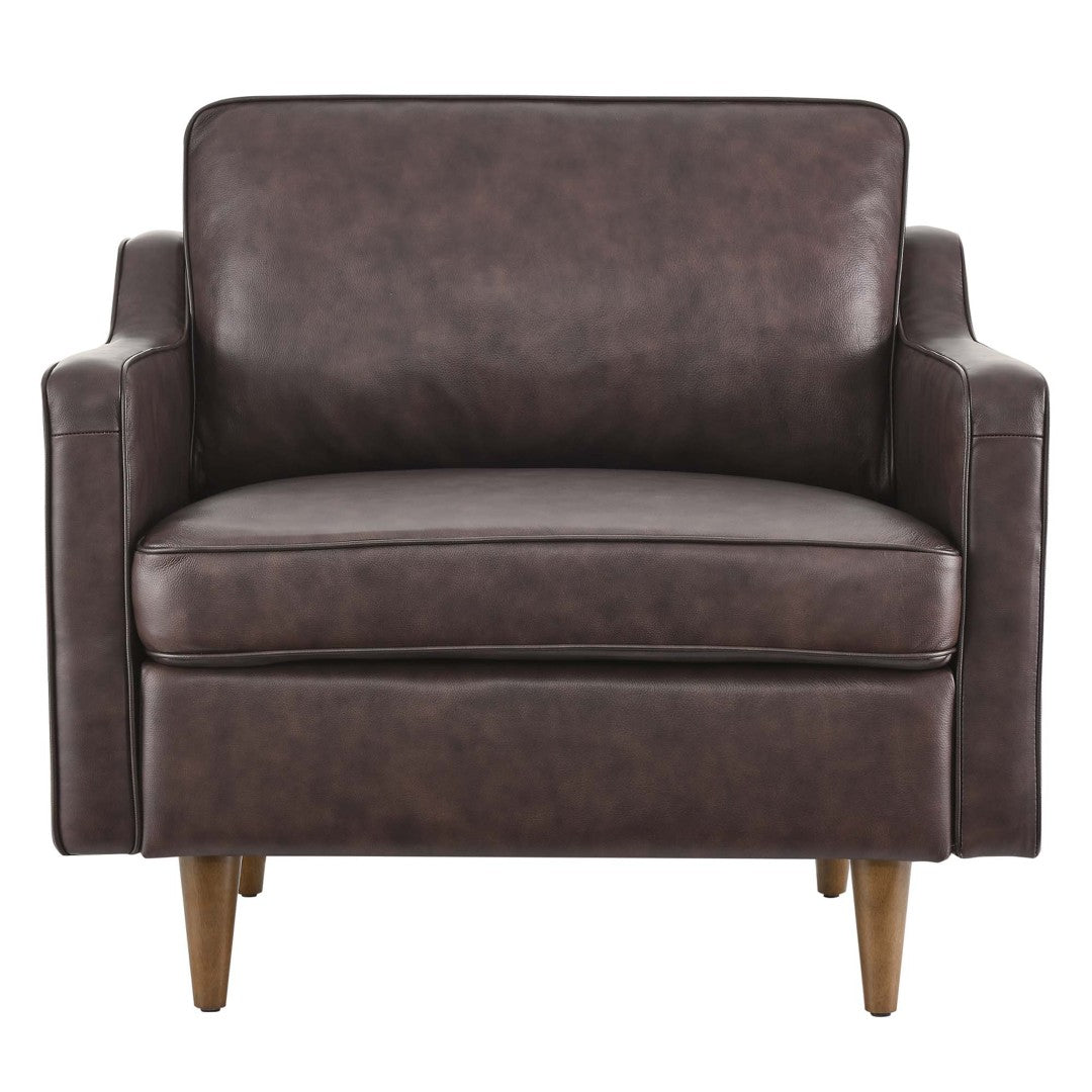 Refresh your small-space living with the Impart Upholstered Genuine Leather Armchair — a refined blend of mid-century modern lines and contemporary comfort. Expertly crafted from top-grain leather with tailored French piping, this accent chair delivers lasting support and timeless style for living rooms, apartments, home offices, or reading nooks. Solid rubberwood legs and a superior coil-spring system ensure durability, while dense foam padding provides plush, all-day comfort.