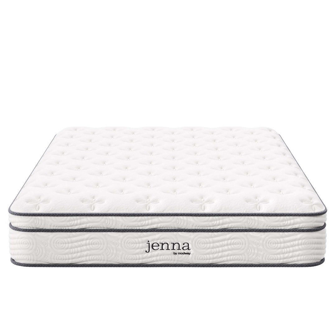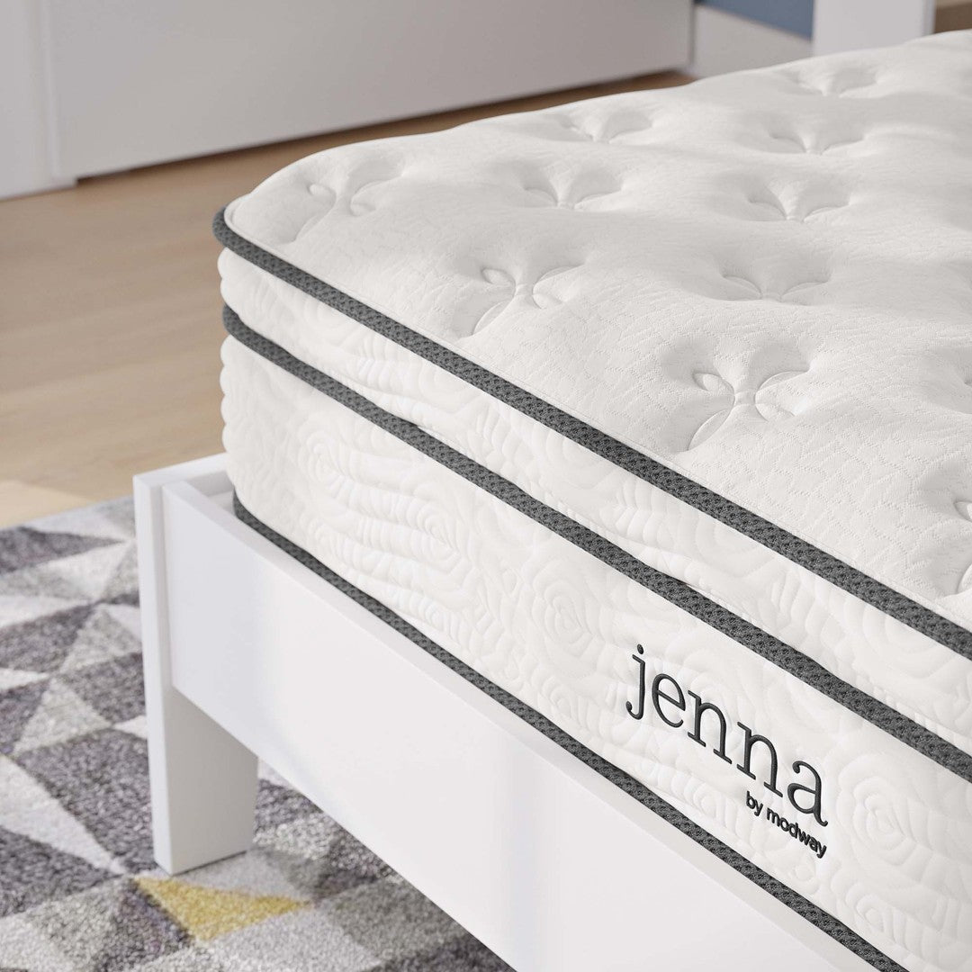 Wake up refreshed on the Jenna hybrid mattress — a thoughtfully engineered 10" full-size mattress that combines the supportive responsiveness of individually wrapped innerspring coils with the cushioning comfort of breathable foams and a quilted pillow-top cover. Designed to reduce partner motion transfer, promote spinal alignment, and deliver targeted pressure relief for side, back, and stomach sleepers, Jenna balances firm support with surface comfort and cooling airflow for consistent, restorative sleep.