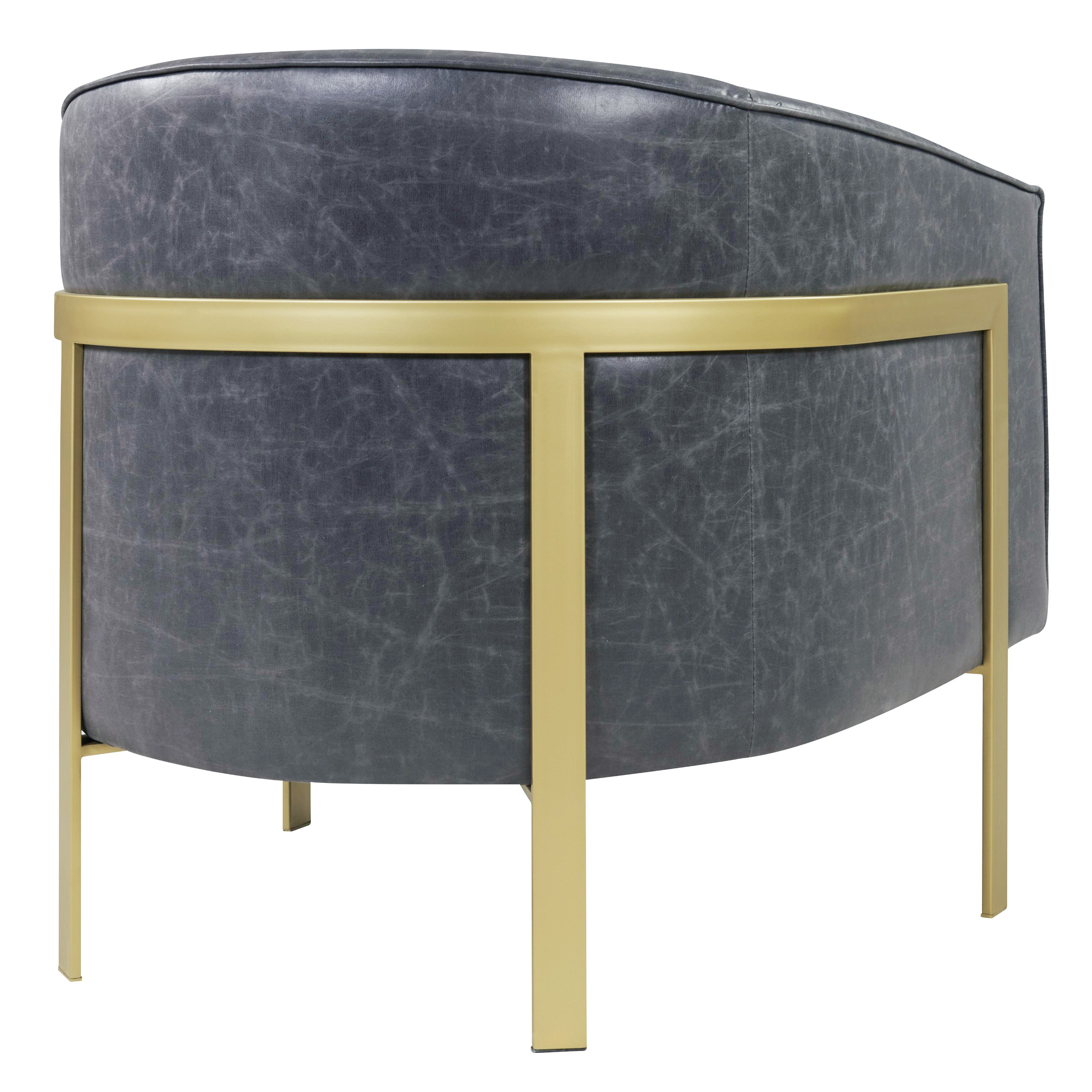 - Feature 1: Chic parlor style accent chair features plush seating in sleek bonded leather upholstery, fashioned on brass painted steel frame that curves the chair for a sophisticated look.
