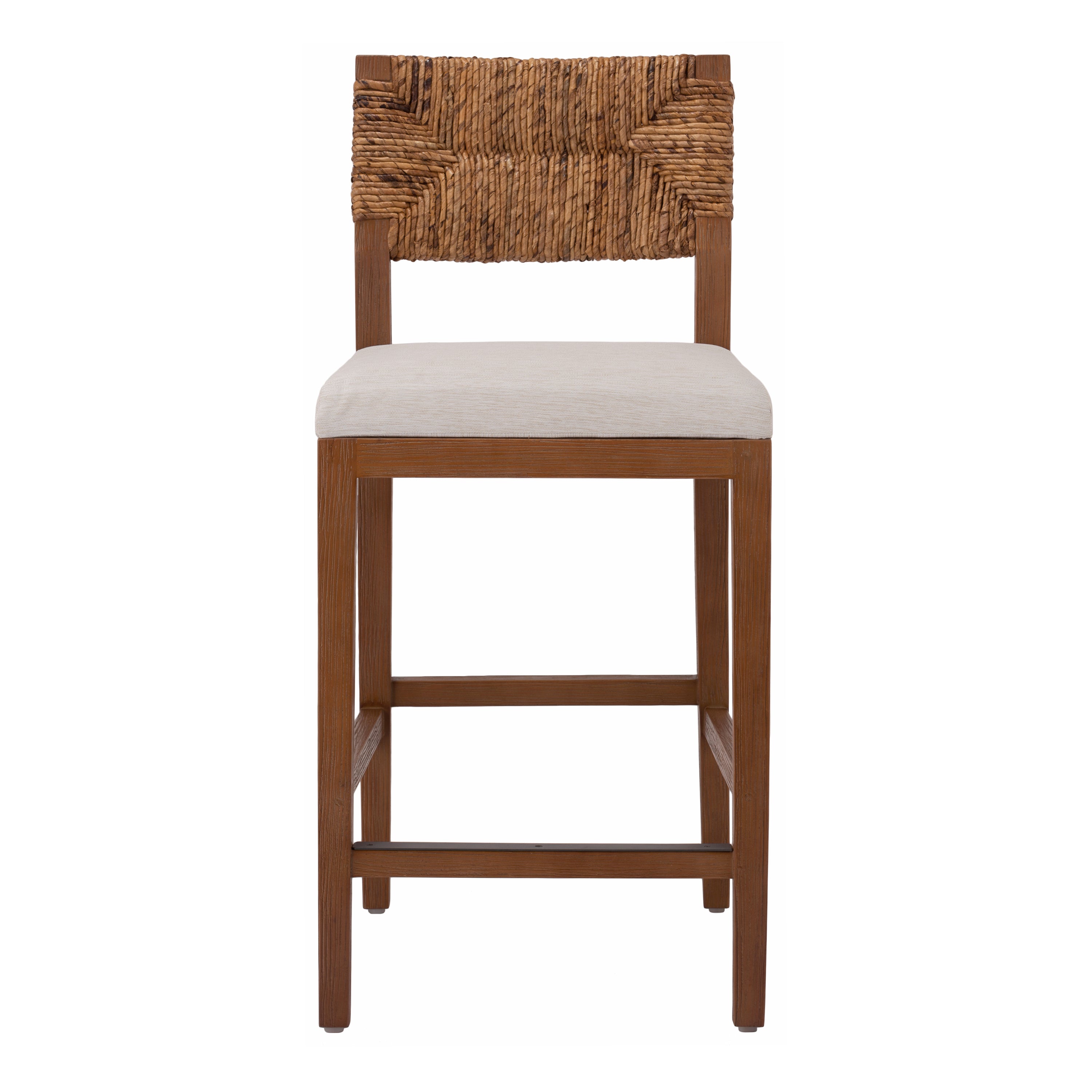 - Feature 1: Woven Banana Leaf shape the backrest, neatly creating a visually appealing rustic modern 27" height counter stool on solid Mahogany wooden legs. Foot stretcher for comfort and stability. Cushion is non-removable.