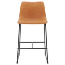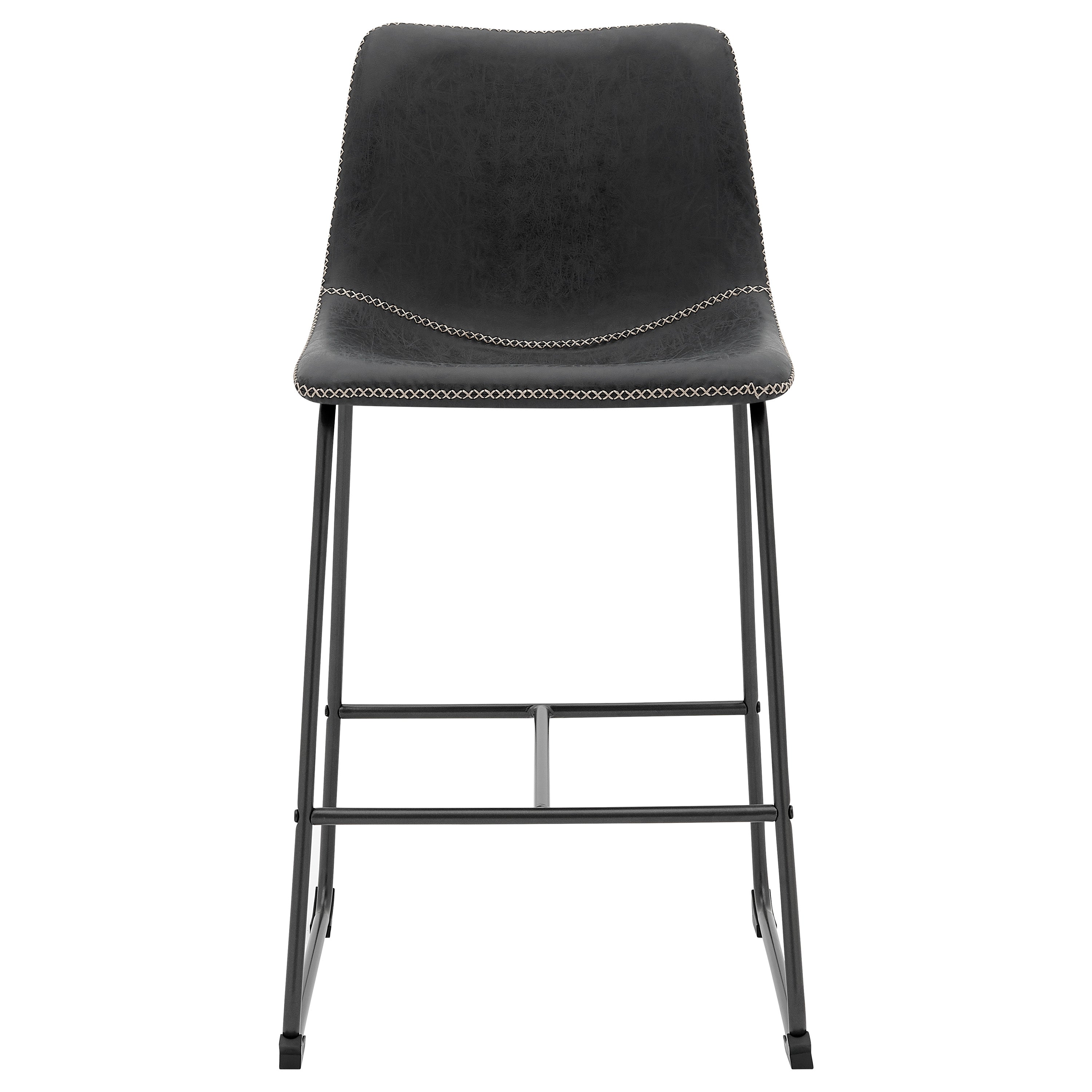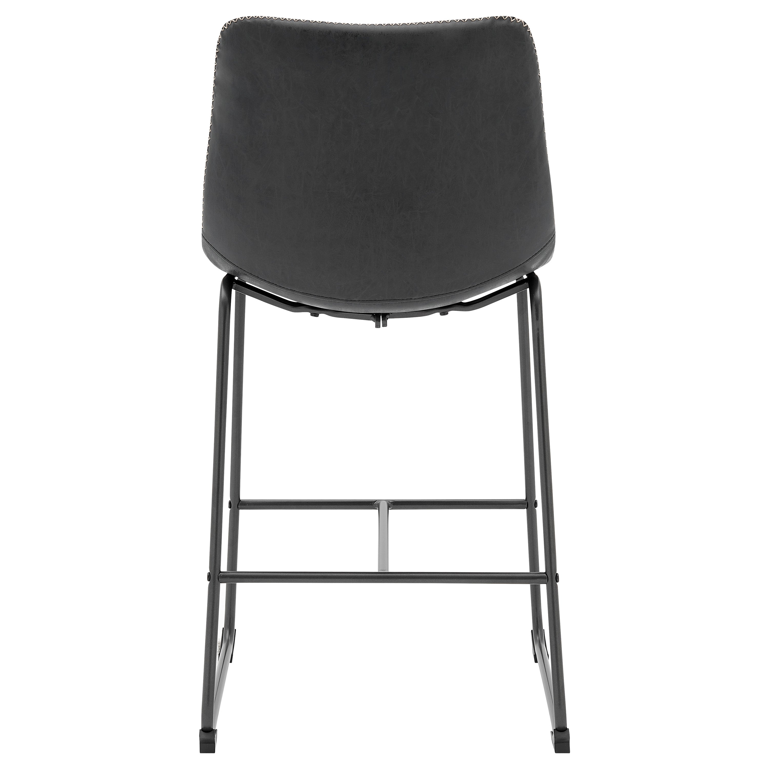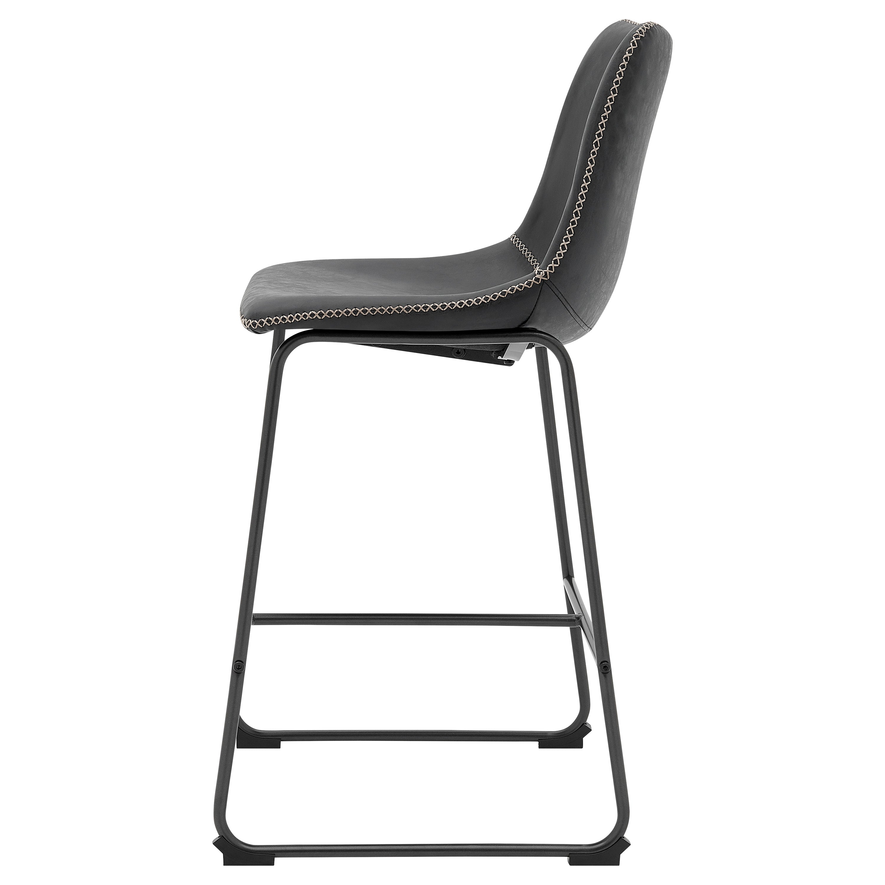- Feature 1: Mid-Century Modern Casual – Faux leather seating in Polyurethane (PU) 26.5” height counter stool is solid and provides an ample seating spot. The Metallic Gunmetal legs are design in slim profile with stretcher foot rest bar, and constructed of powder coated steel for durability.