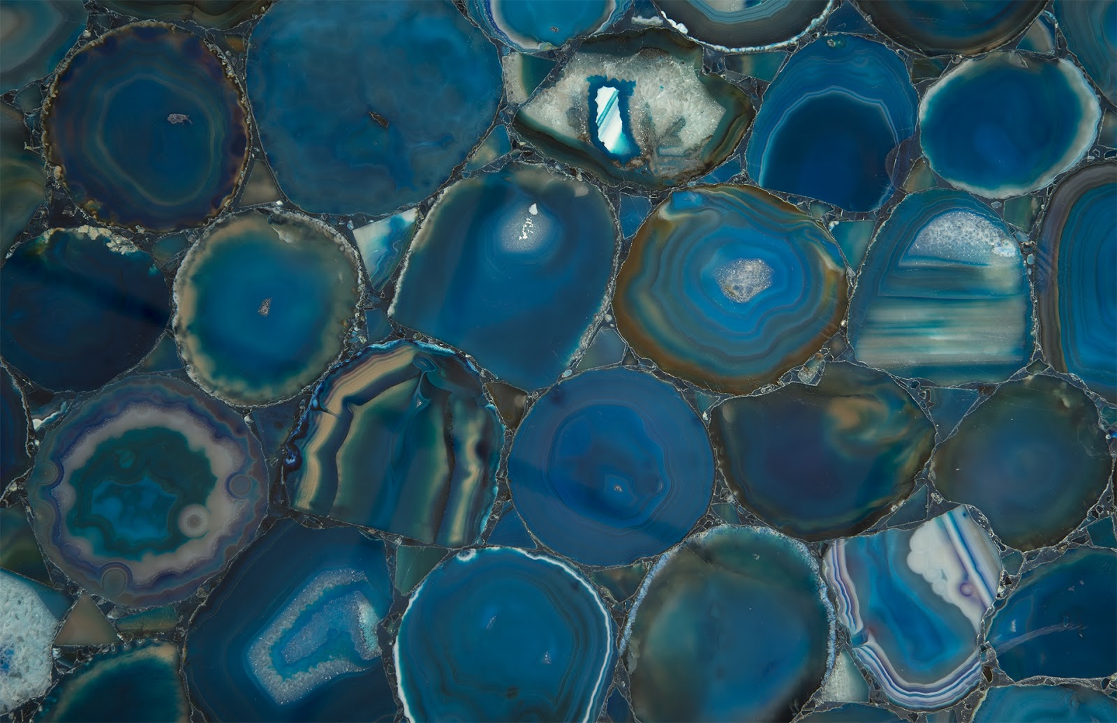 Agate/amethyst is found in volcanic rocks and prehistoric lavas in China. The vividness of color in the stone creates a mosaic pattern that will make these contemporary tables essence to any room.