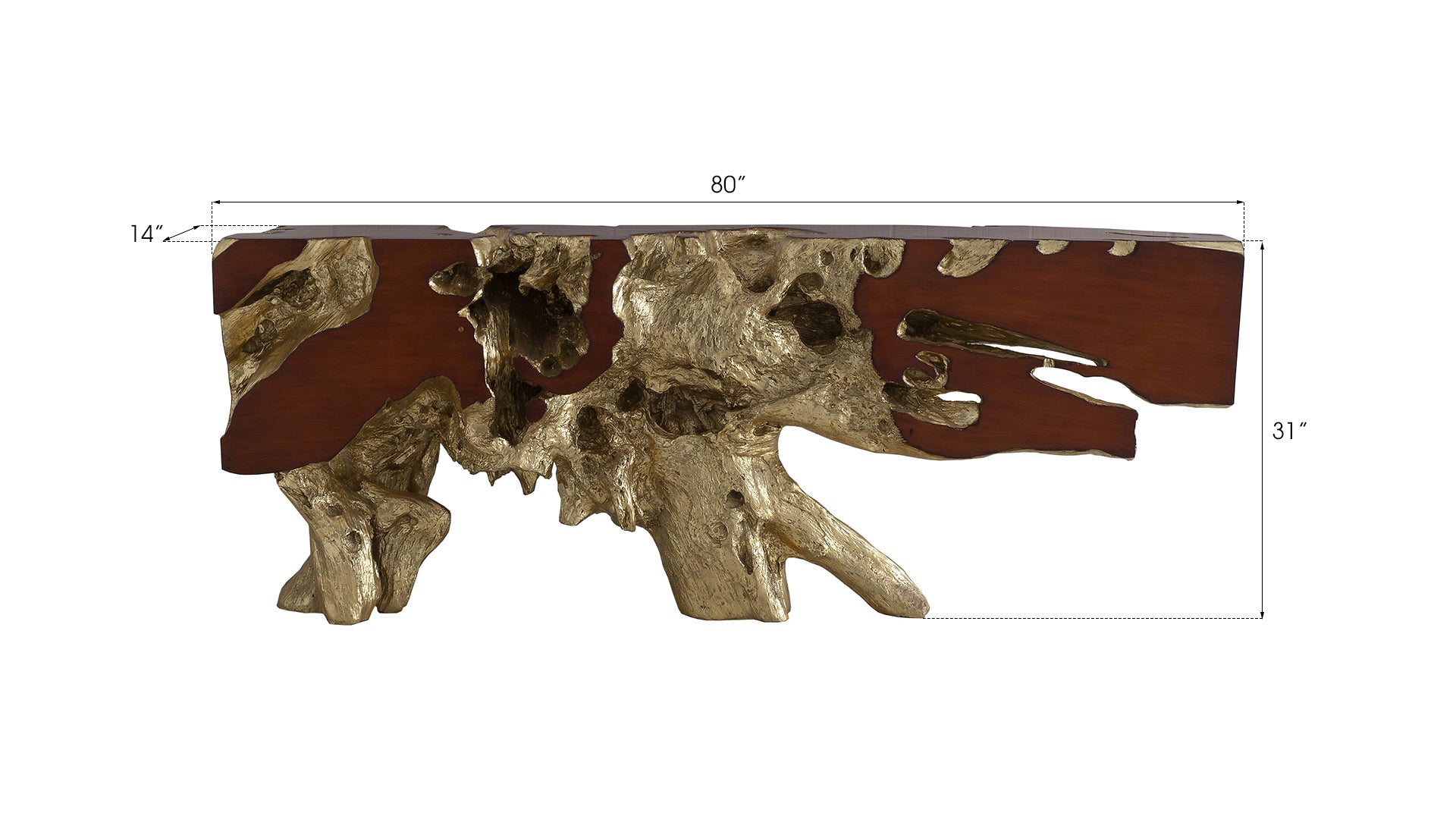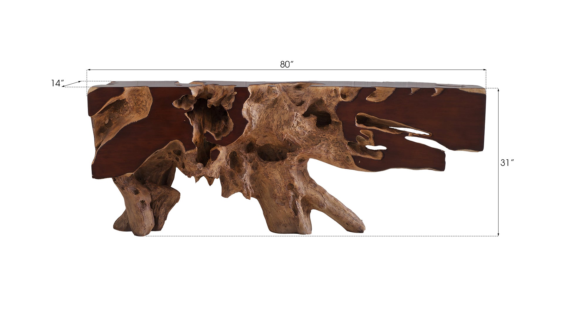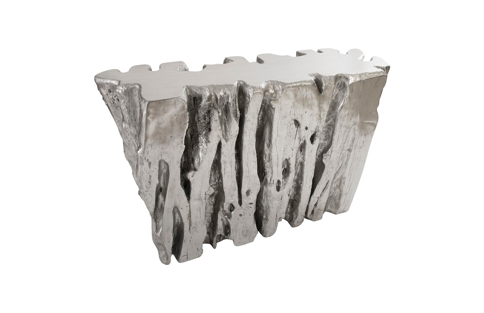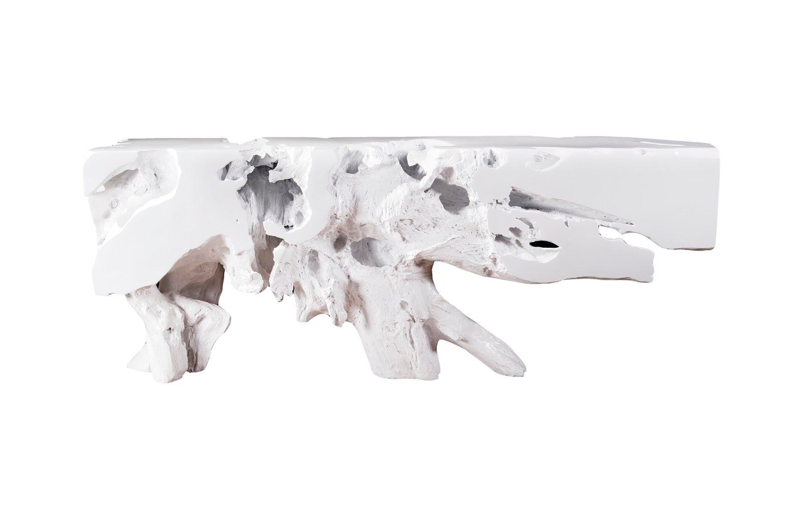 When we spot a shape that blows us away, the designers at Phillips Collection are not shy about borrowing it and creating a piece of furniture that mimics elemental symbols we see in the woods. Case in point is our Freeform Large Faux Wood Console Table, which is made of composite in a faux bois finish. Cast from one of our favorite Origins pieces of wood, this tree-trunk console table personifies our ethos of modern organic. By treating the surface of this log console table to such a warm finish, we’ve created a personable piece for any number of interior styles. Just imagine how perfectly it will fit into the décor of a ski chalet or a homey lake cottage! We also offer the table in several sizes and in a number of finishes that are equally stunning.