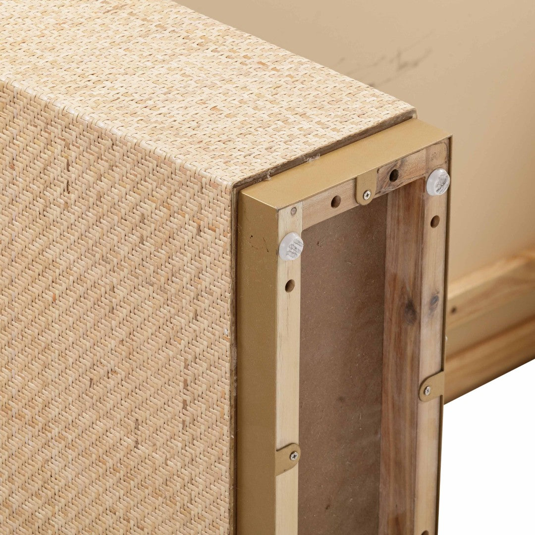- Finish & Color: Natural ash finish with woven rattan detail for a warm, textured look