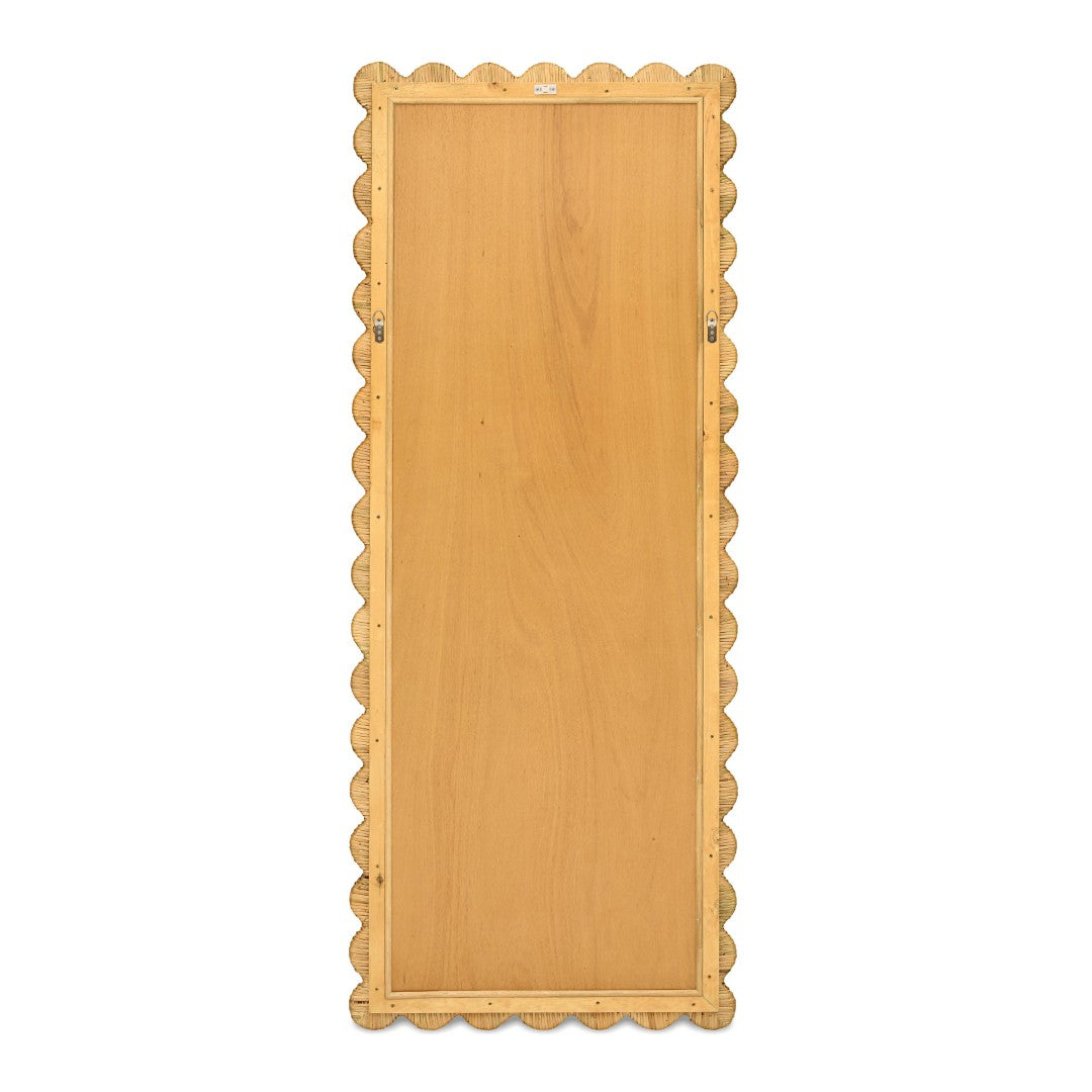 Add a light, coastal-inspired focal point to any room with this handcrafted natural rattan wall mirror. Its scalloped, wavy frame is handwoven from locally harvested rattan to create warm texture and artisan appeal, while the full-length glass brightens and visually expands entryways, bedrooms, or living spaces. Built with a substantial, high-quality construction, it can be placed on the floor or securely mounted on the wall.