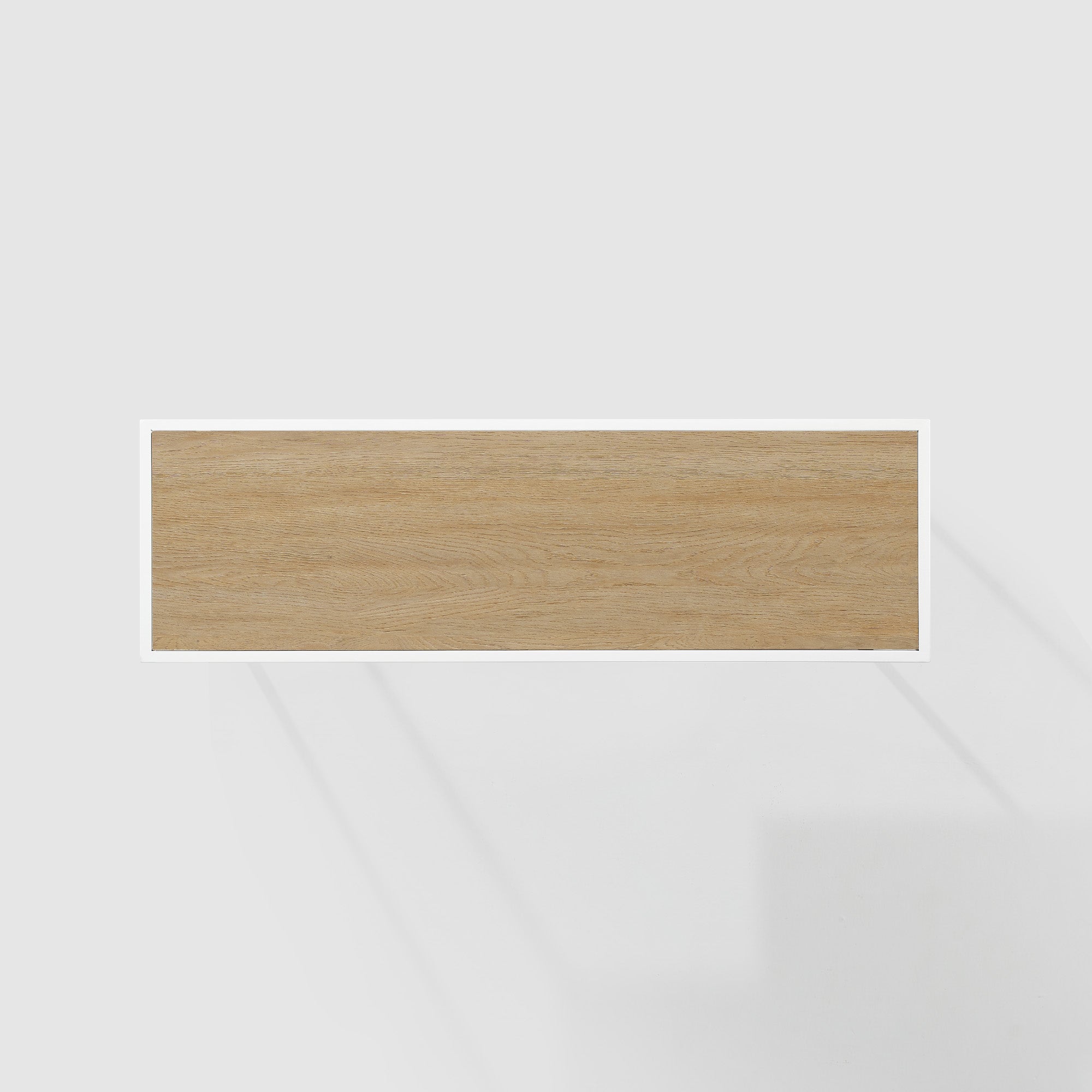 - Two floating, fixed shelves for additional display space