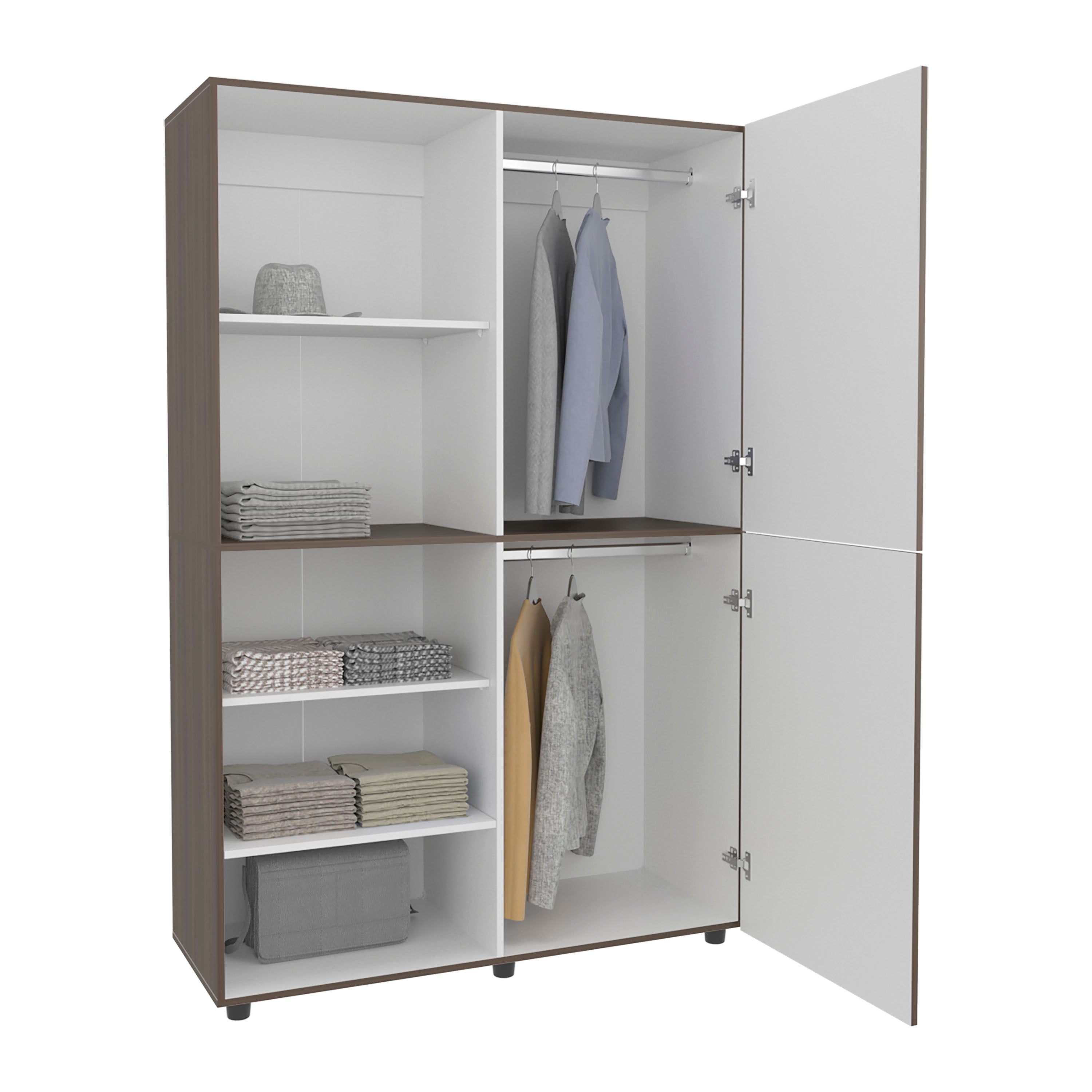 - Versatile interior: Includes a hanging rod plus interior shelves to accommodate clothing, linens, or folded items