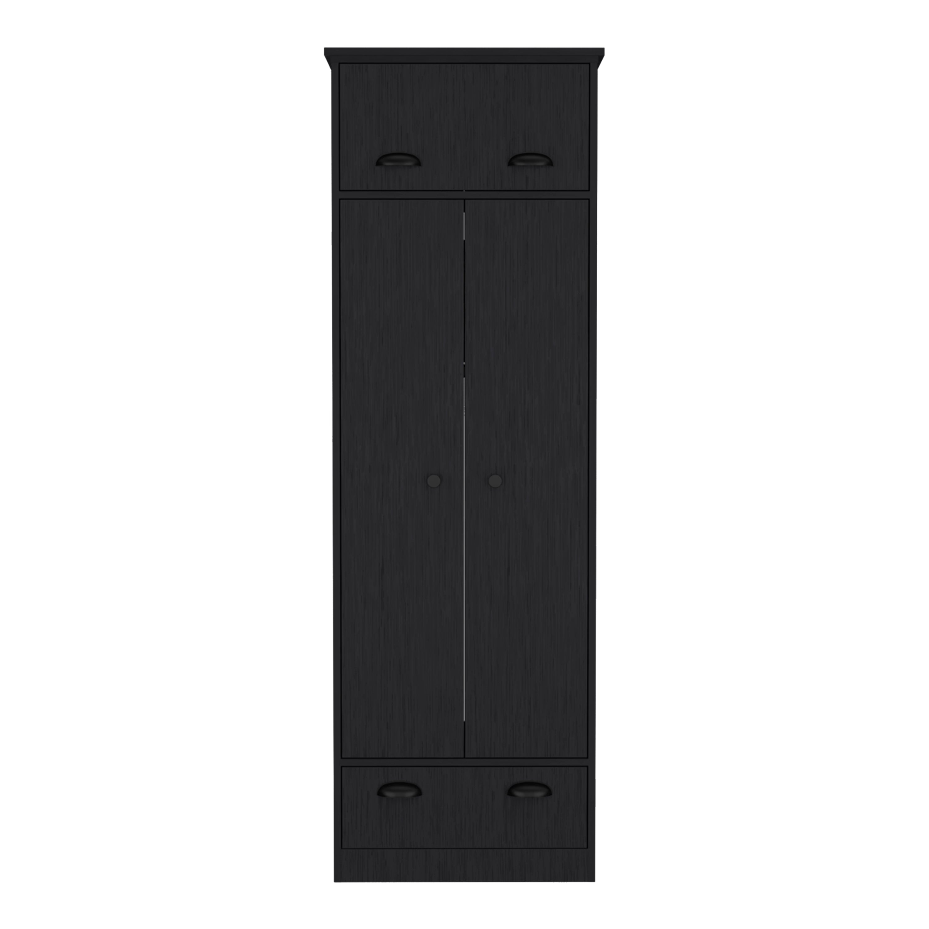 - Both drawers are equipped with chic handles, adding a touch of sophistication and enhancing the overall visual appeal of the armoire.