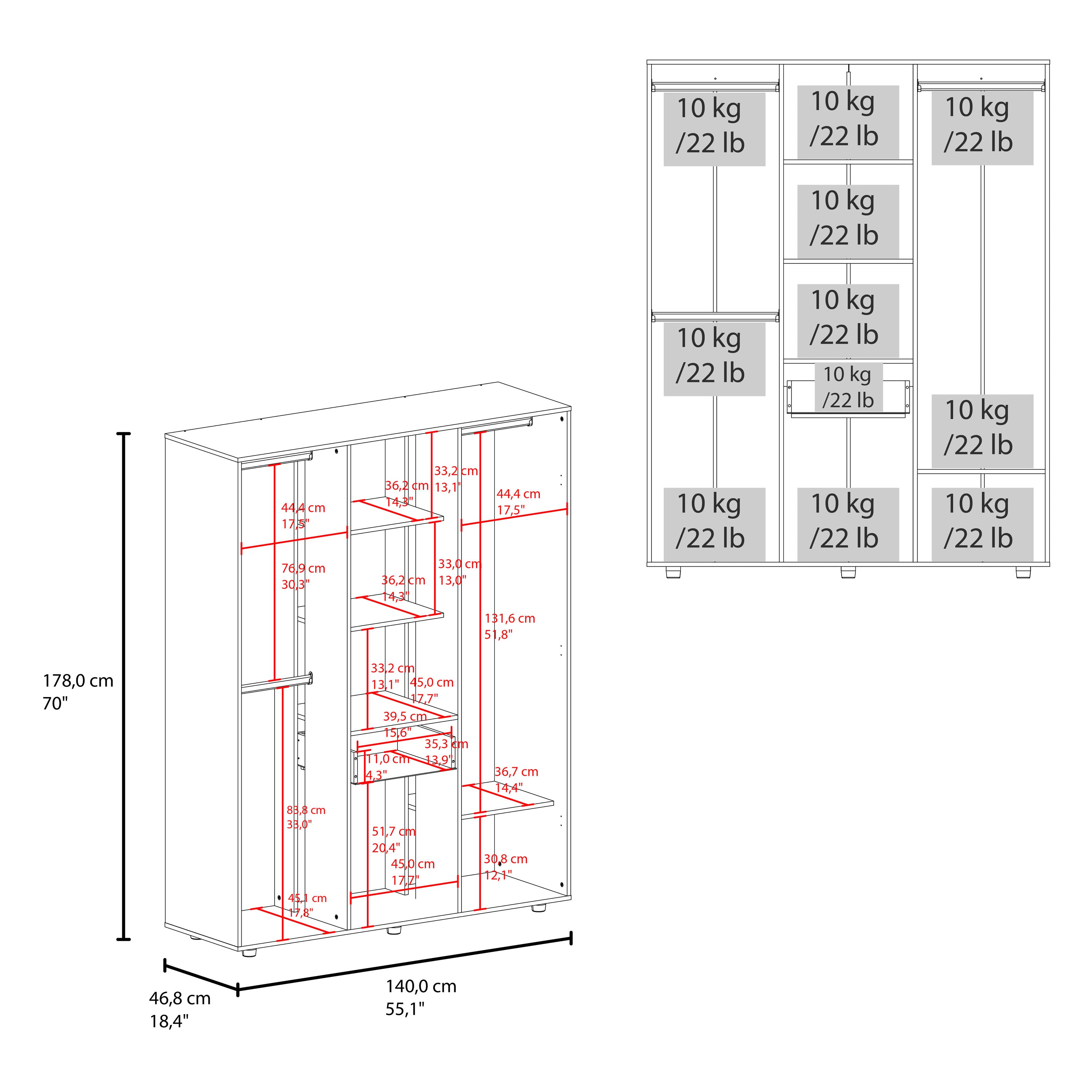 - Dimensions: 70" (H) x 55,1" (W) x 18,4" (D)."