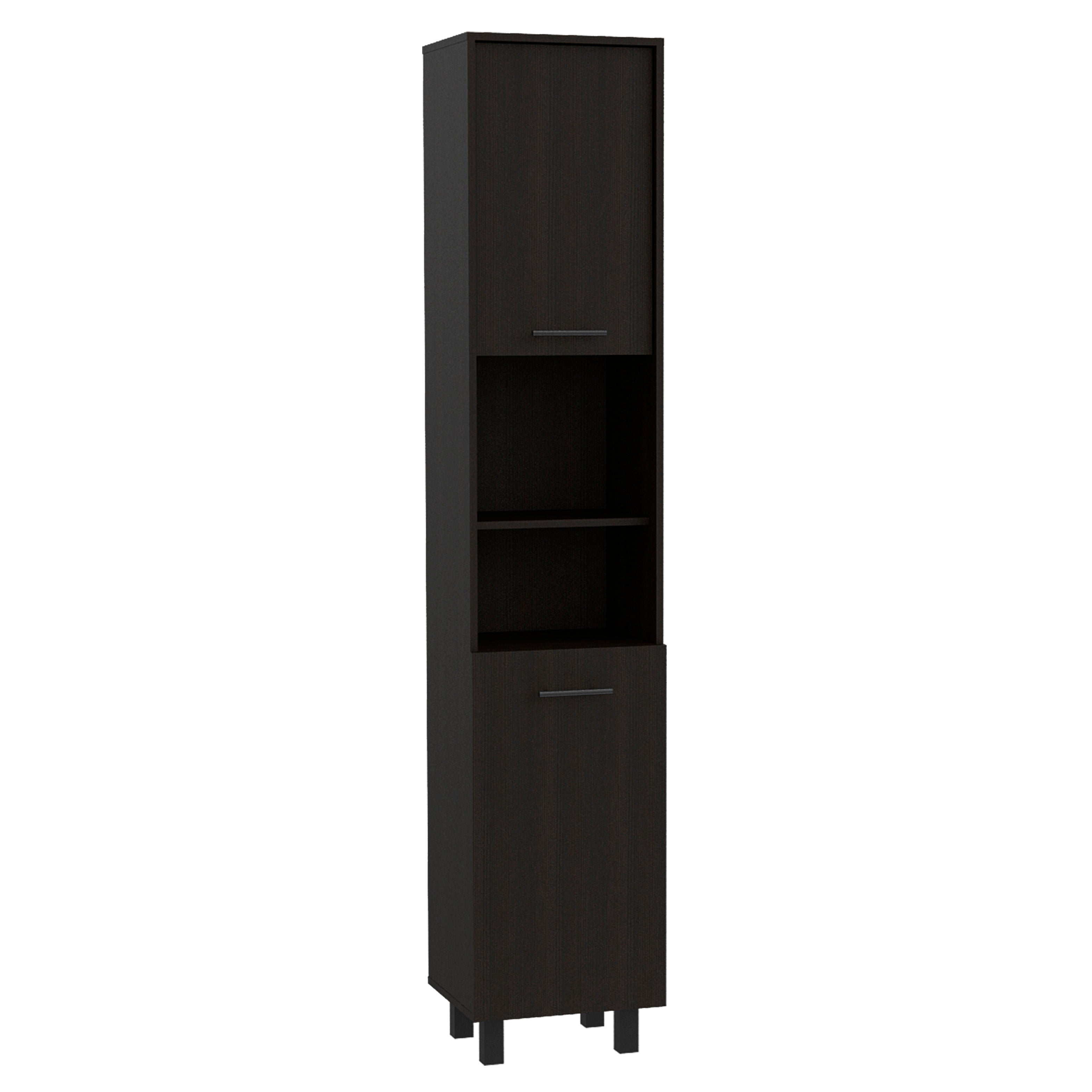 Bring order and contemporary style to your kitchen, pantry, or utility room with this sleek black storage pantry. Designed for practical everyday use, it combines open shelving and enclosed cabinets to keep frequently used items accessible while hiding away clutter. The clean lines and neutral black finish fit modern and transitional décors, making it a versatile storage solution for small and large spaces alike.