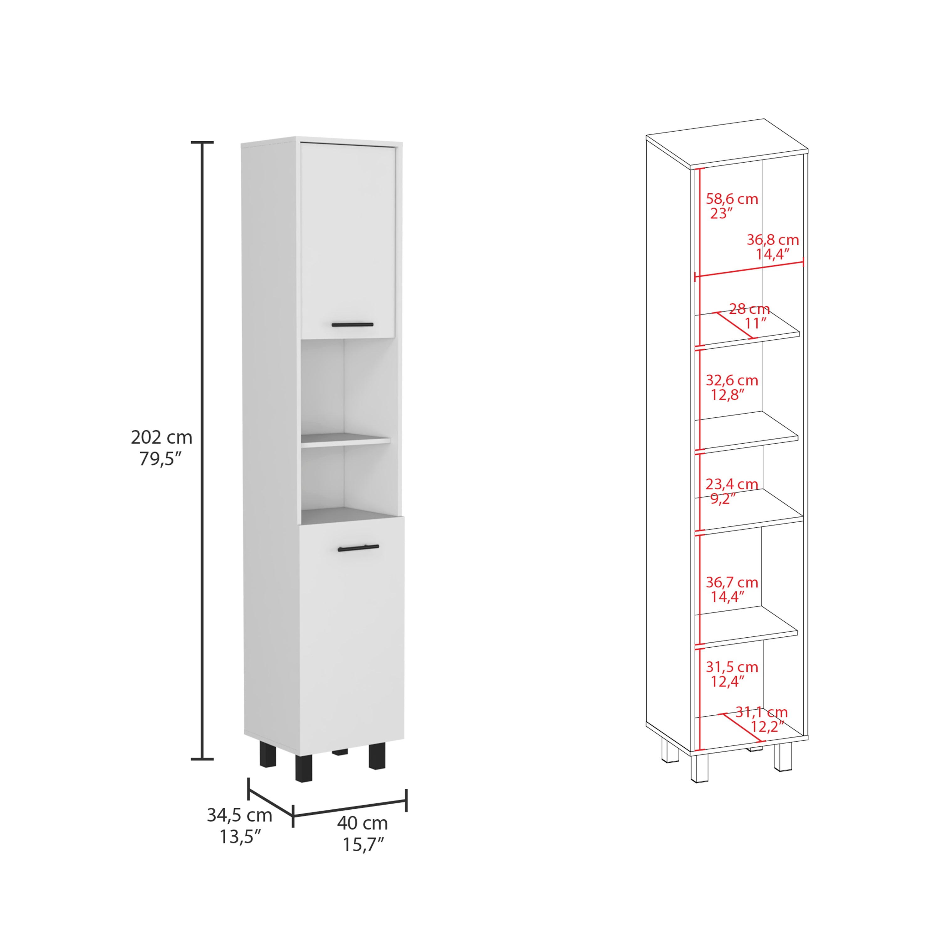 - Top Cabinet with 23" H x 13.7 " x 15.5" dimensions