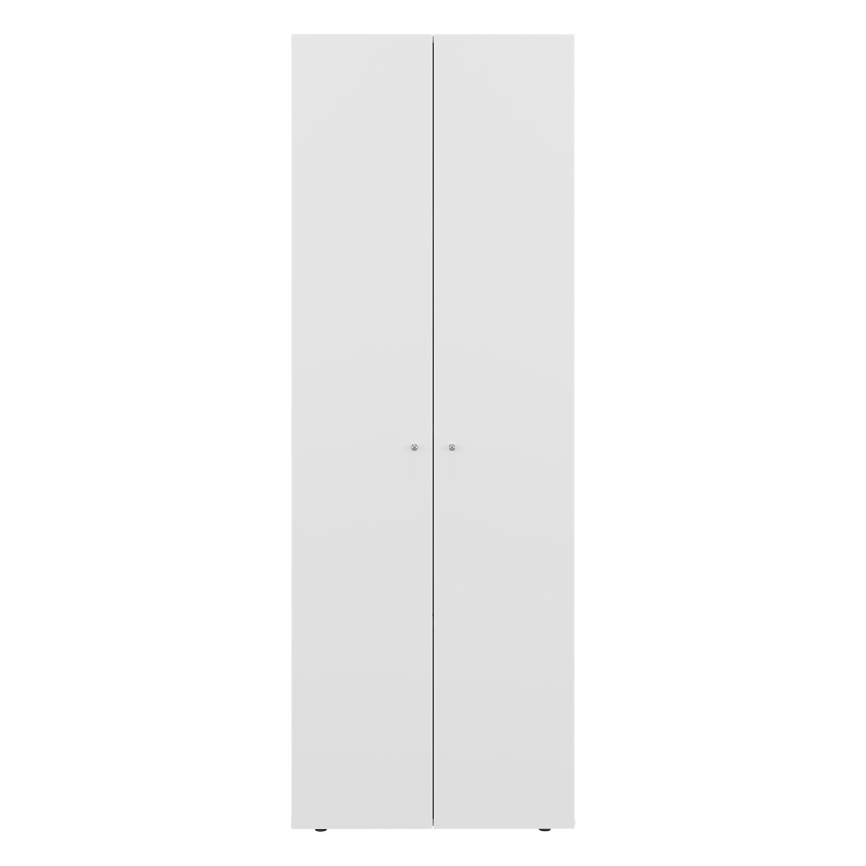 Keep your bedroom, laundry room, or utility area neat and accessible with this compact two-door closet system. Thoughtfully designed for smaller spaces, it combines a slim footprint with flexible storage options—fixed shelves and a hanging section—so you can store clothing, linens, shoes, and household items in one tidy unit. The clean white finish and durable engineered wood construction make it a practical, low-maintenance addition to modern homes.