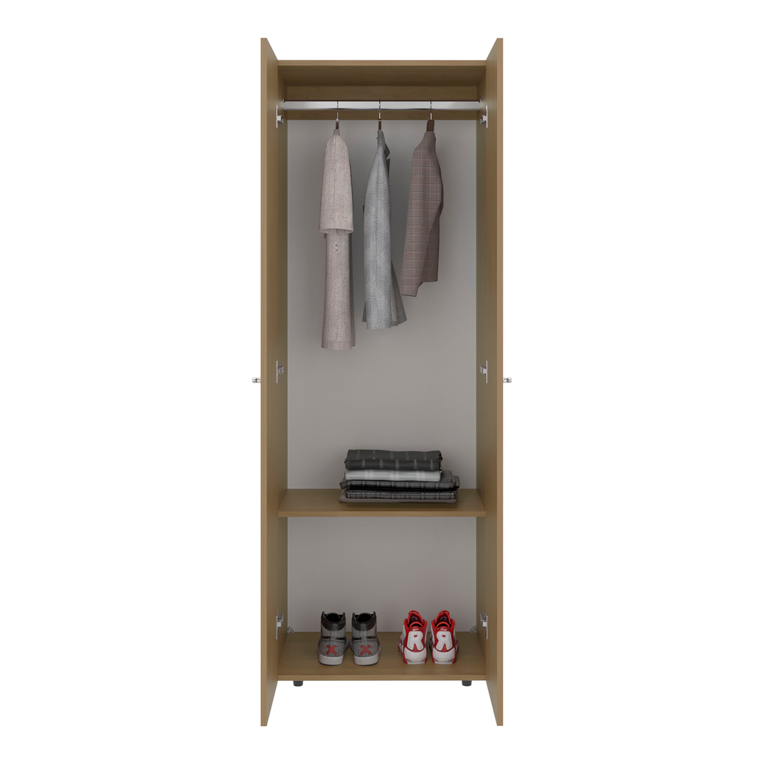Bring order and style to your bedroom with this modern 2-door closet armoire — a smart, space-saving solution for hanging garments and storing folded items. Its clean natural oak finish complements contemporary decor while the compact footprint makes it ideal for small bedrooms, apartments, or walk-in closets where efficient vertical storage is needed.