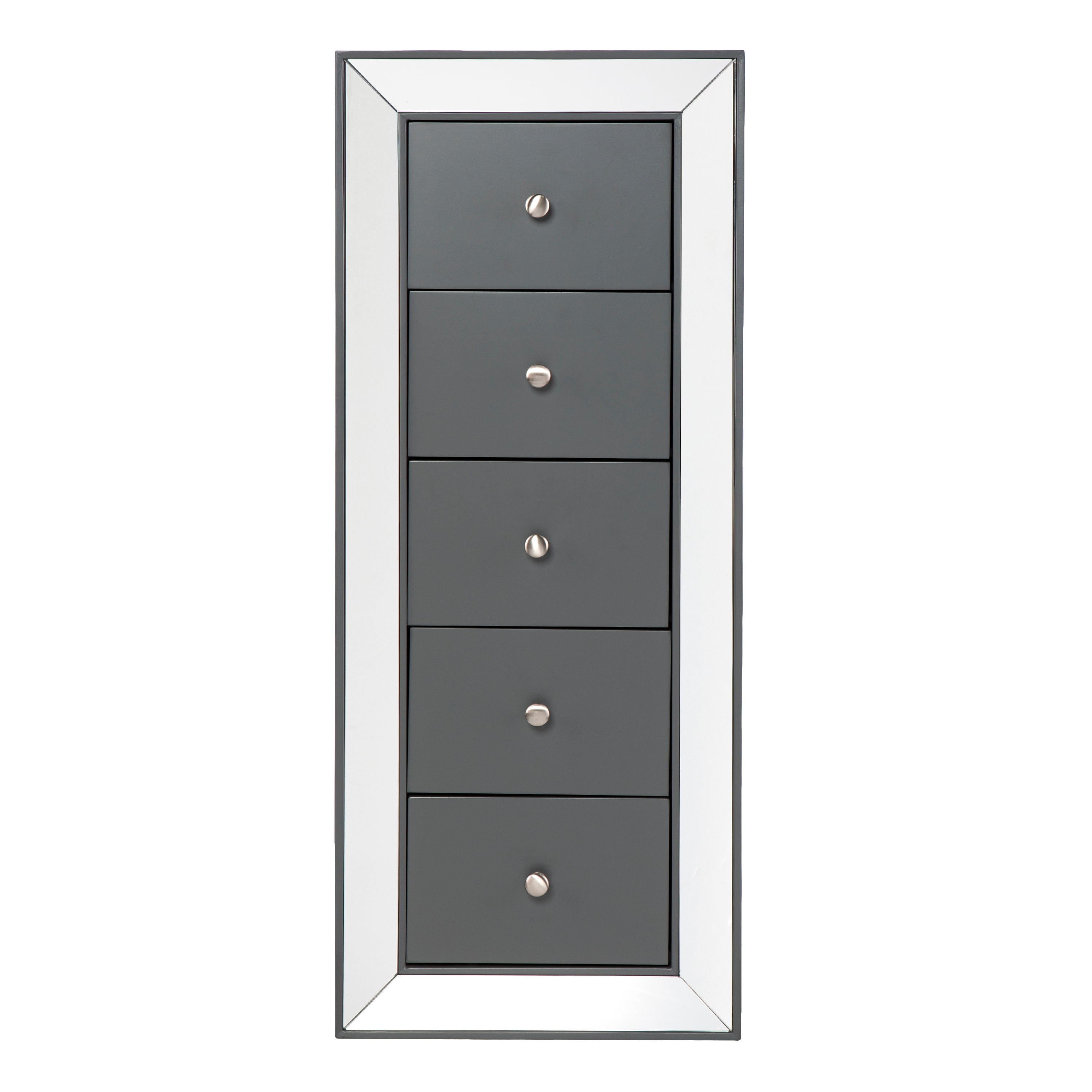 - Feature 3: Swinging doors conceal ample jewelry storage