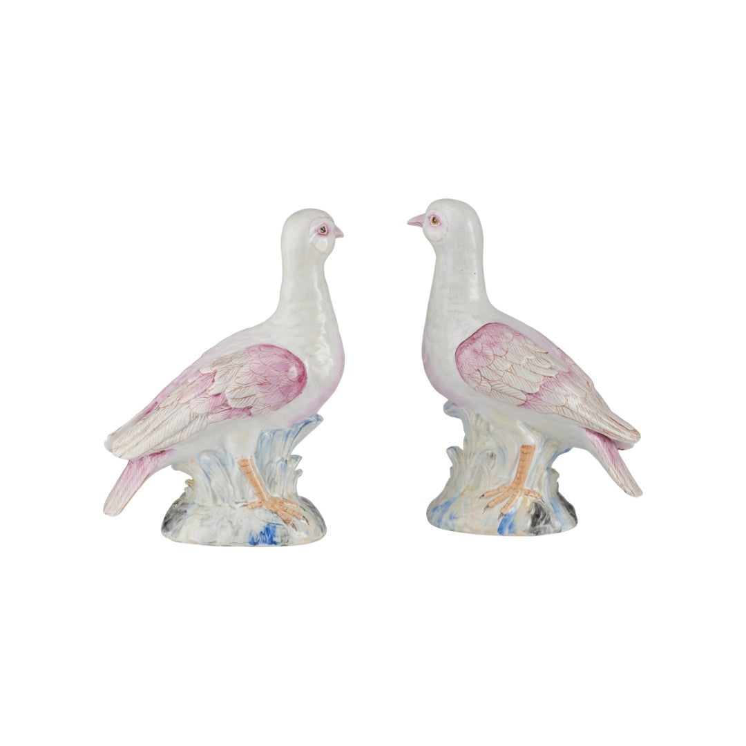 Delicately handpainted in the traditional Famille Rose palette, this paired tern figurine set blends avian elegance with classic Chinese decorative artistry. Soft pinks, greens, and blues highlight finely rendered florals and intricate brushwork, creating a refined accent that complements both classic and contemporary interiors. Ideal for mantelpieces, shelves, or as a collected centerpiece, the pair offers timeless charm and subtle sophistication.