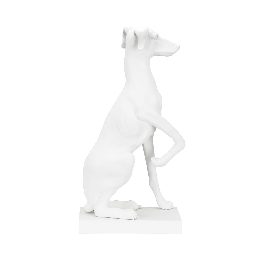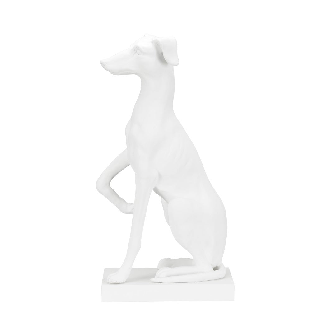 This elegant white greyhound sculpture brings refined, contemporary charm to any room. Expertly designed by Claire Bell, the matte-white composite piece captures the greyhound’s poised, graceful silhouette and makes a subtle yet striking statement on a mantel, console, or bookshelf.