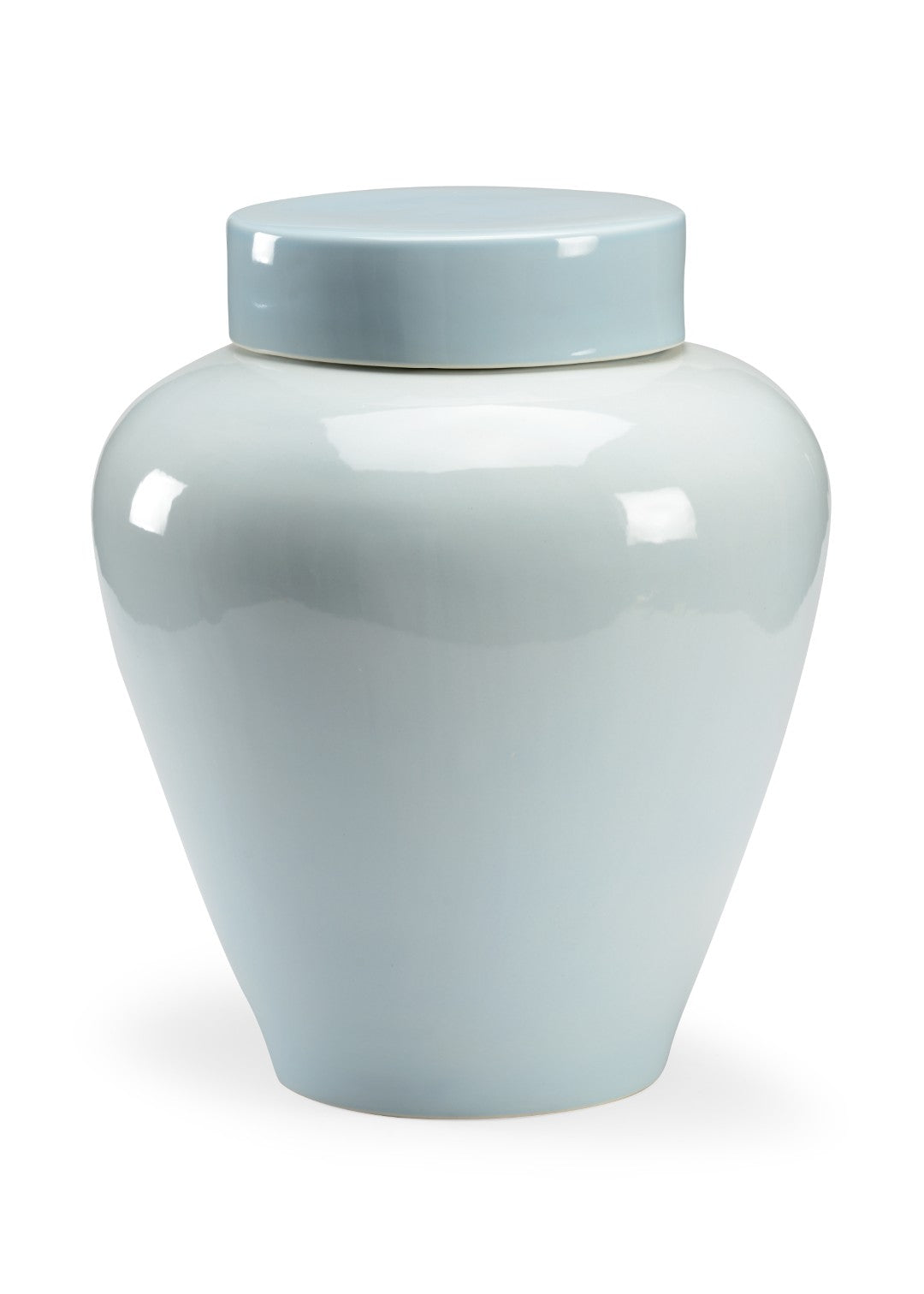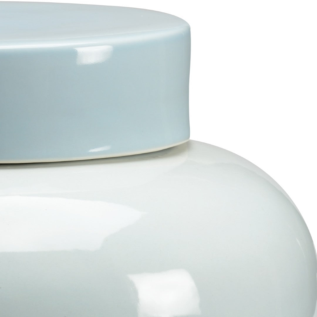 A serene baby-blue glazed porcelain jar with a fitted lid, the Lumberton Vase adds classic elegance and a soft pop of color to mantels, tabletops, or entryway consoles. Its smooth glazed finish and balanced silhouette make it equally suited for display on its own or as a vessel for dried stems and decorative branches.