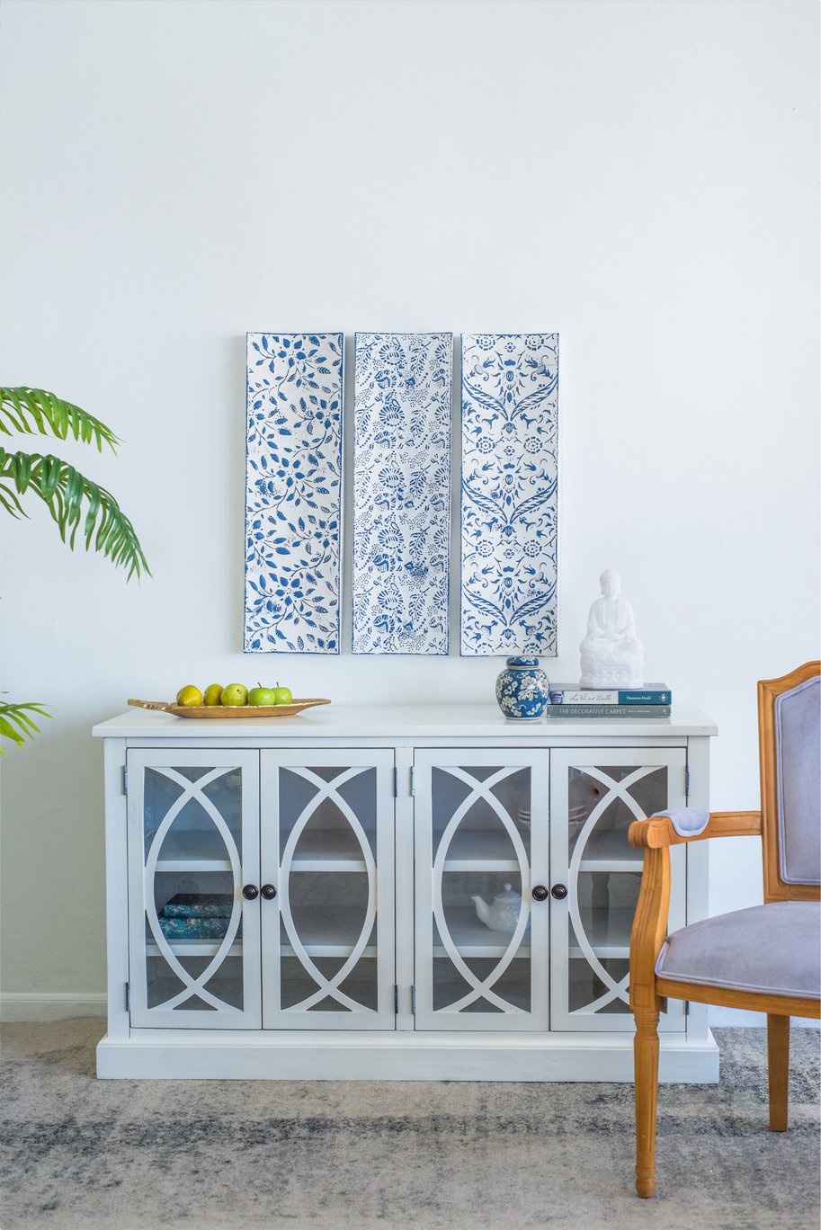 - Style this white resin Sitting Buddha on teak coffee table or bookcase for added height and depth.