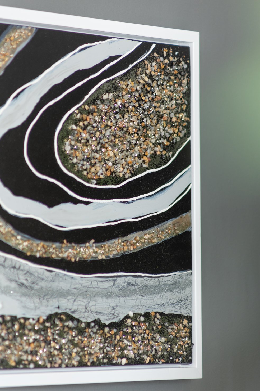 - To complete the visuals, stones and crystals have been set into the artwork, providing a new dimension to the texture.