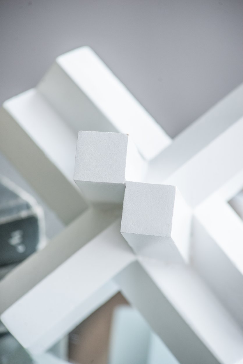 - Showcasing the effortless beauty of modern minimalism, this set includes three wooden jack-like sculptures, each finished in matte white.