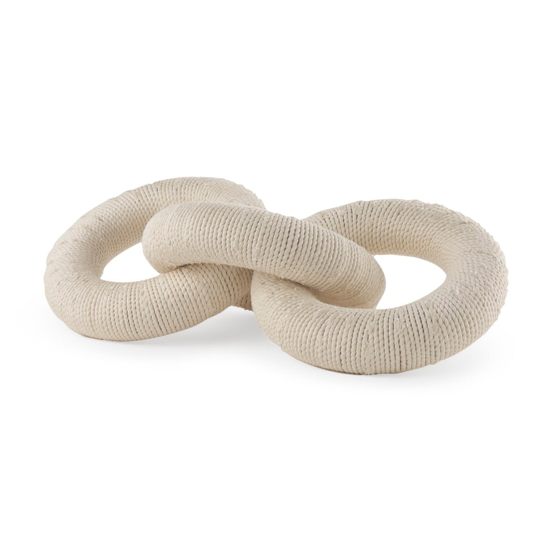 Bring organic texture and coastal charm to your space with this handcrafted decorative chain link. Constructed from solid wood and wrapped in soft cotton rope, the piece offers tactile warmth and a sculptural silhouette that works as a standalone accent or grouped with other objects on a shelf, console, or coffee table.